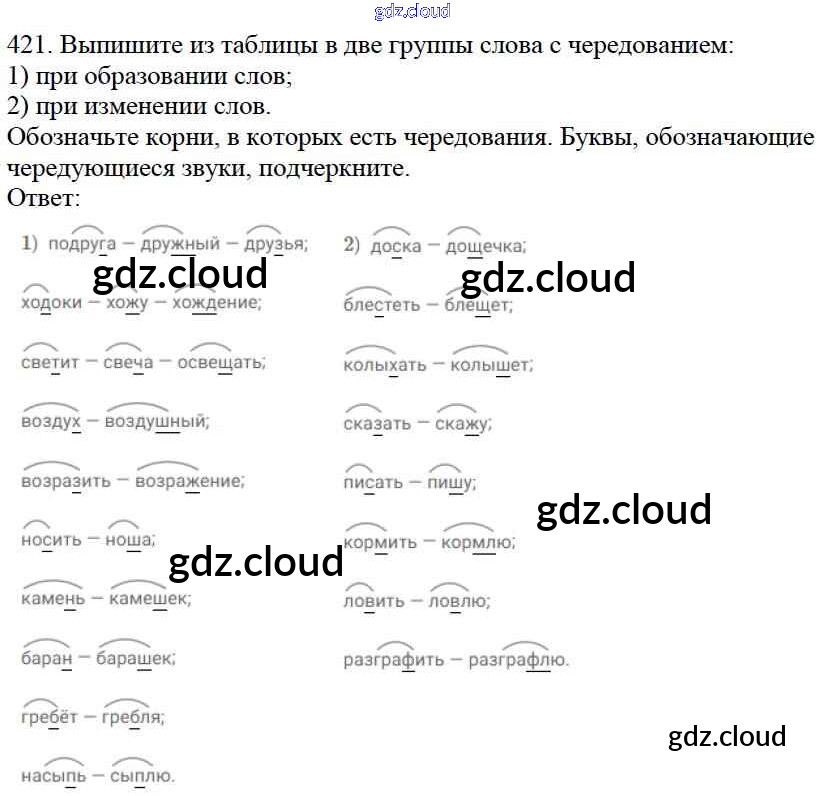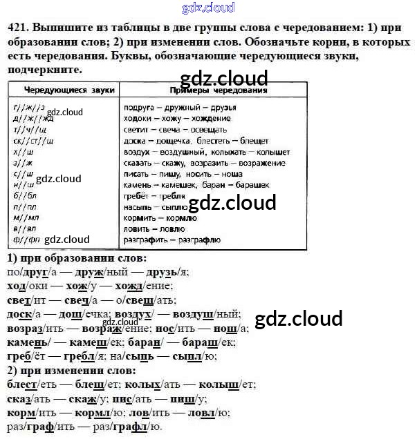 Ответ на задание 421 Учебник Русский язык за 5 (пятый) класс Баранов, Ладыженская, Тростенцова, Кулибаба, Григорян 2016, 2019 Часть 1, 2