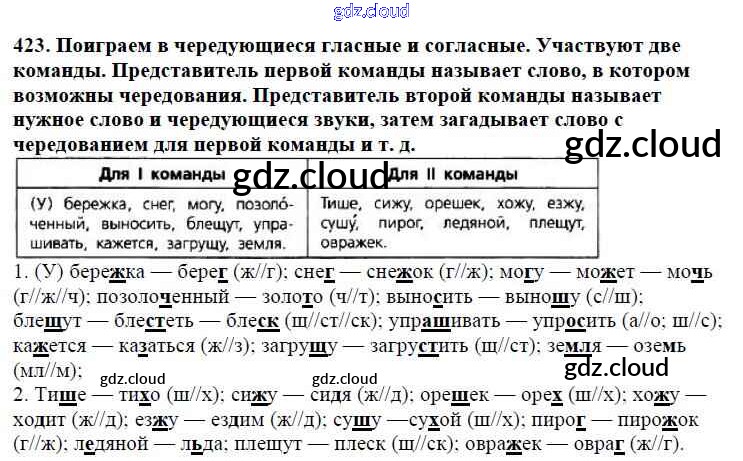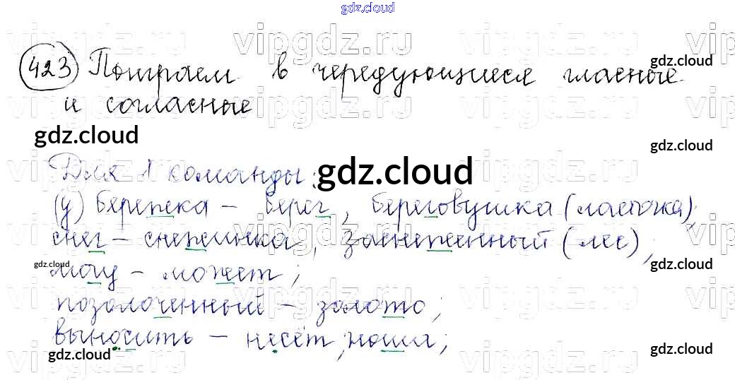 Ответ на задание 423 Учебник Русский язык за 5 (пятый) класс Баранов, Ладыженская, Тростенцова, Кулибаба, Григорян 2016, 2019 Часть 1, 2
