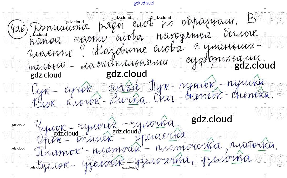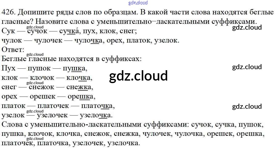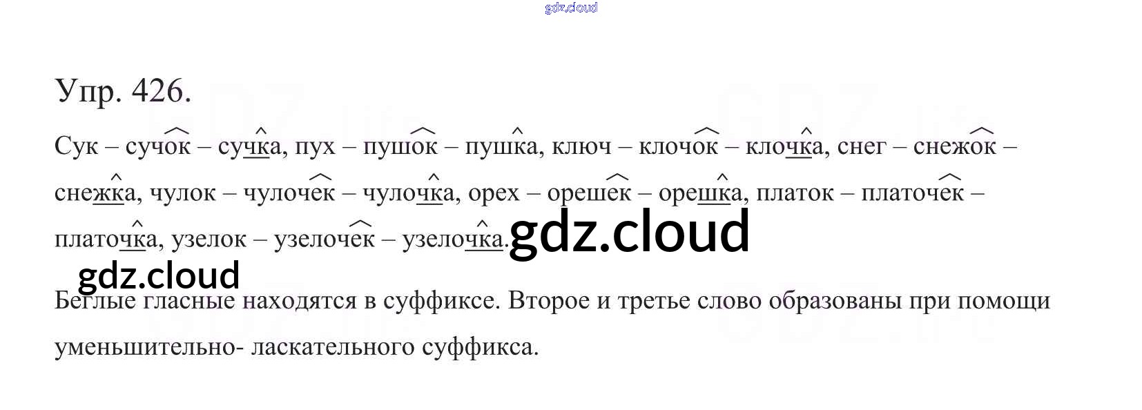 Ответ на задание 426 Учебник Русский язык за 5 (пятый) класс Баранов, Ладыженская, Тростенцова, Кулибаба, Григорян 2016, 2019 Часть 1, 2