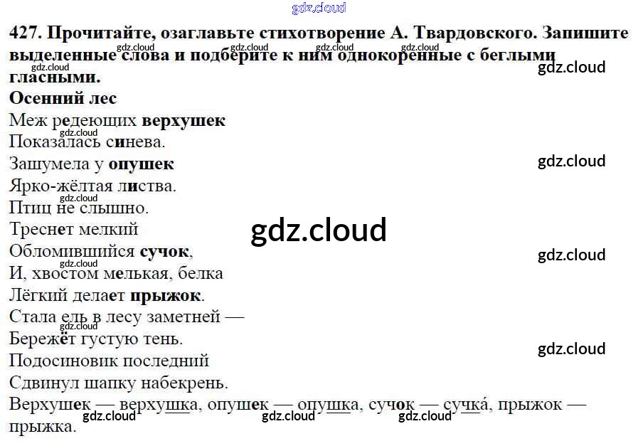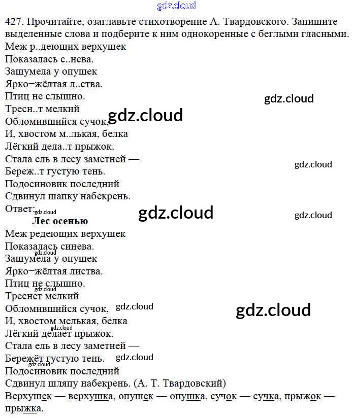 Ответ на задание 427 Учебник Русский язык за 5 (пятый) класс Баранов, Ладыженская, Тростенцова, Кулибаба, Григорян 2016, 2019 Часть 1, 2