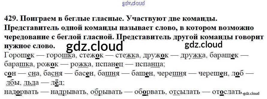 Ответ на задание 429 Учебник Русский язык за 5 (пятый) класс Баранов, Ладыженская, Тростенцова, Кулибаба, Григорян 2016, 2019 Часть 1, 2