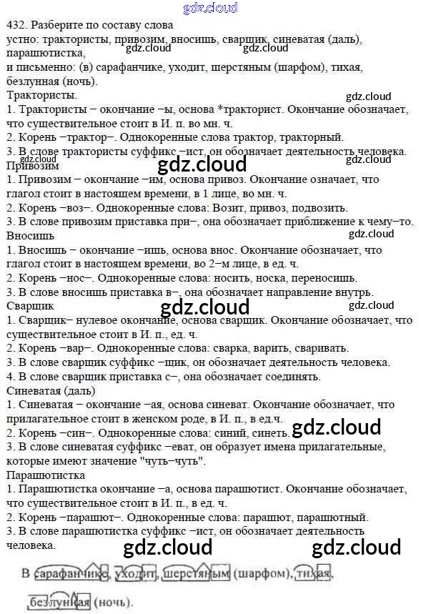 Ответ на задание 432 Учебник Русский язык за 5 (пятый) класс Баранов, Ладыженская, Тростенцова, Кулибаба, Григорян 2016, 2019 Часть 1, 2