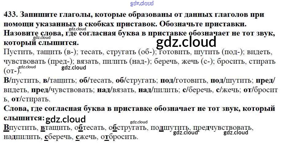 Ответ на задание 433 Учебник Русский язык за 5 (пятый) класс Баранов, Ладыженская, Тростенцова, Кулибаба, Григорян 2016, 2019 Часть 1, 2