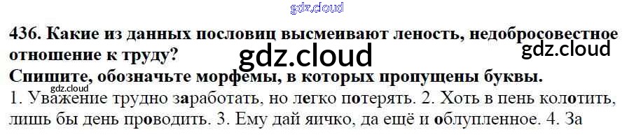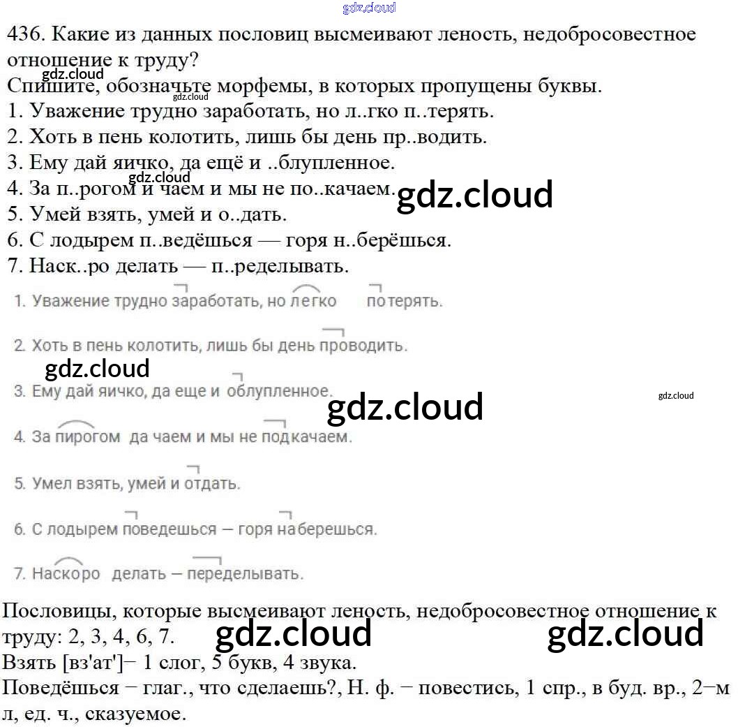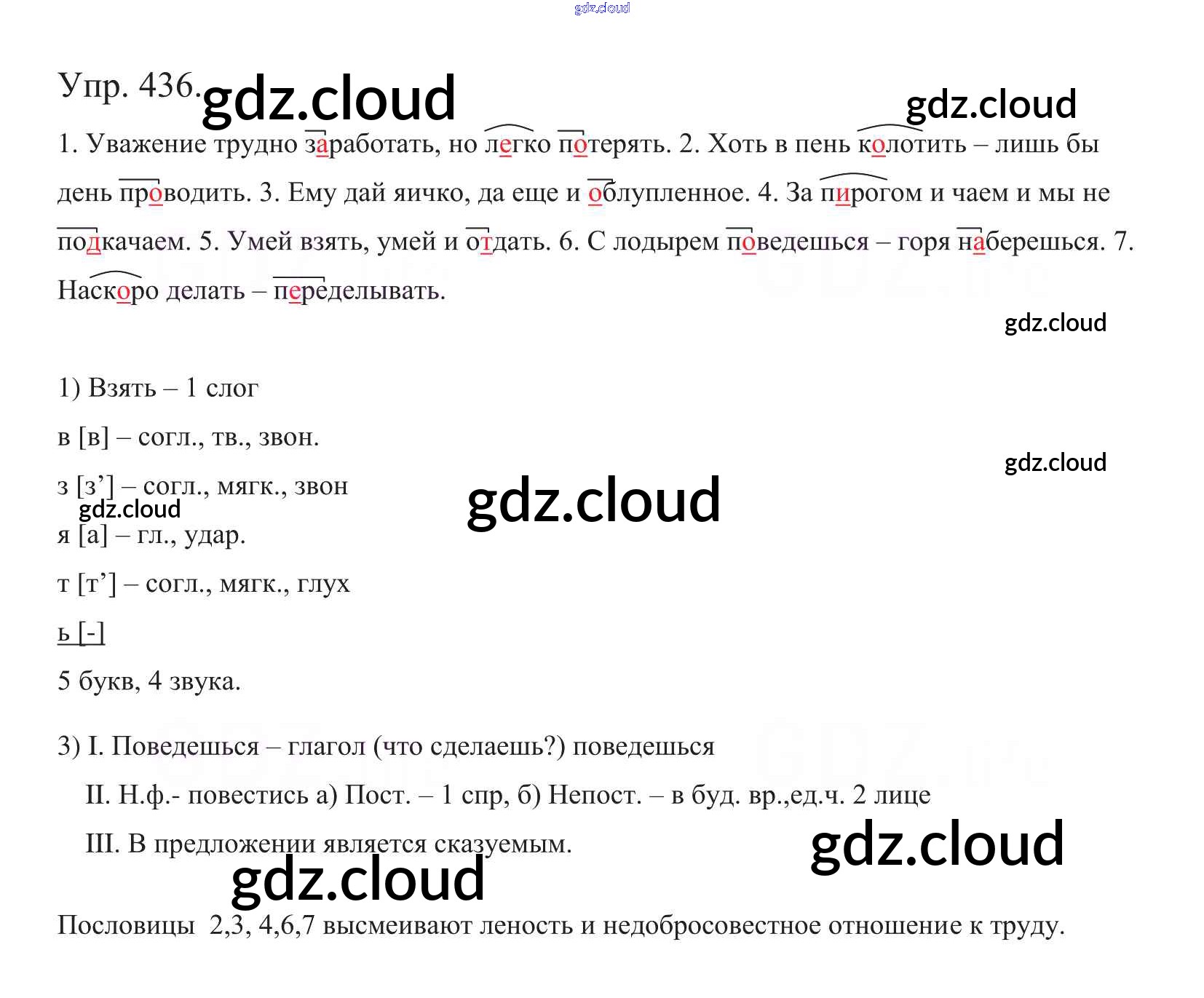 Ответ на задание 436 Учебник Русский язык за 5 (пятый) класс Баранов, Ладыженская, Тростенцова, Кулибаба, Григорян 2016, 2019 Часть 1, 2