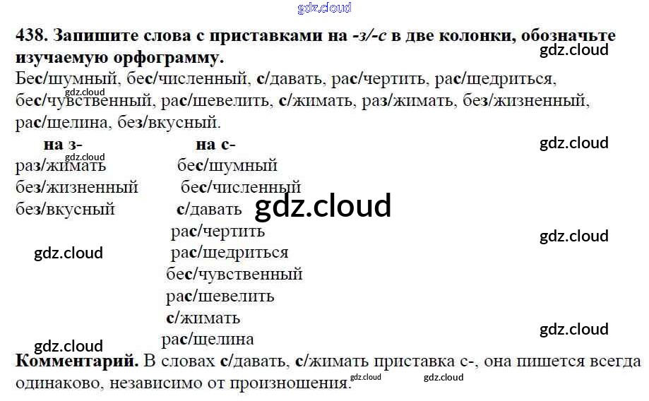 Ответ на задание 438 Учебник Русский язык за 5 (пятый) класс Баранов, Ладыженская, Тростенцова, Кулибаба, Григорян 2016, 2019 Часть 1, 2