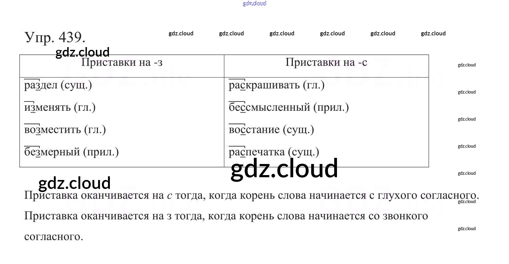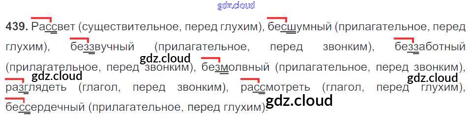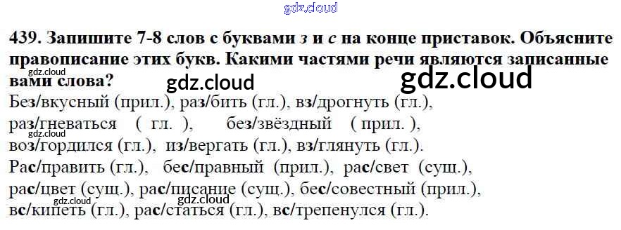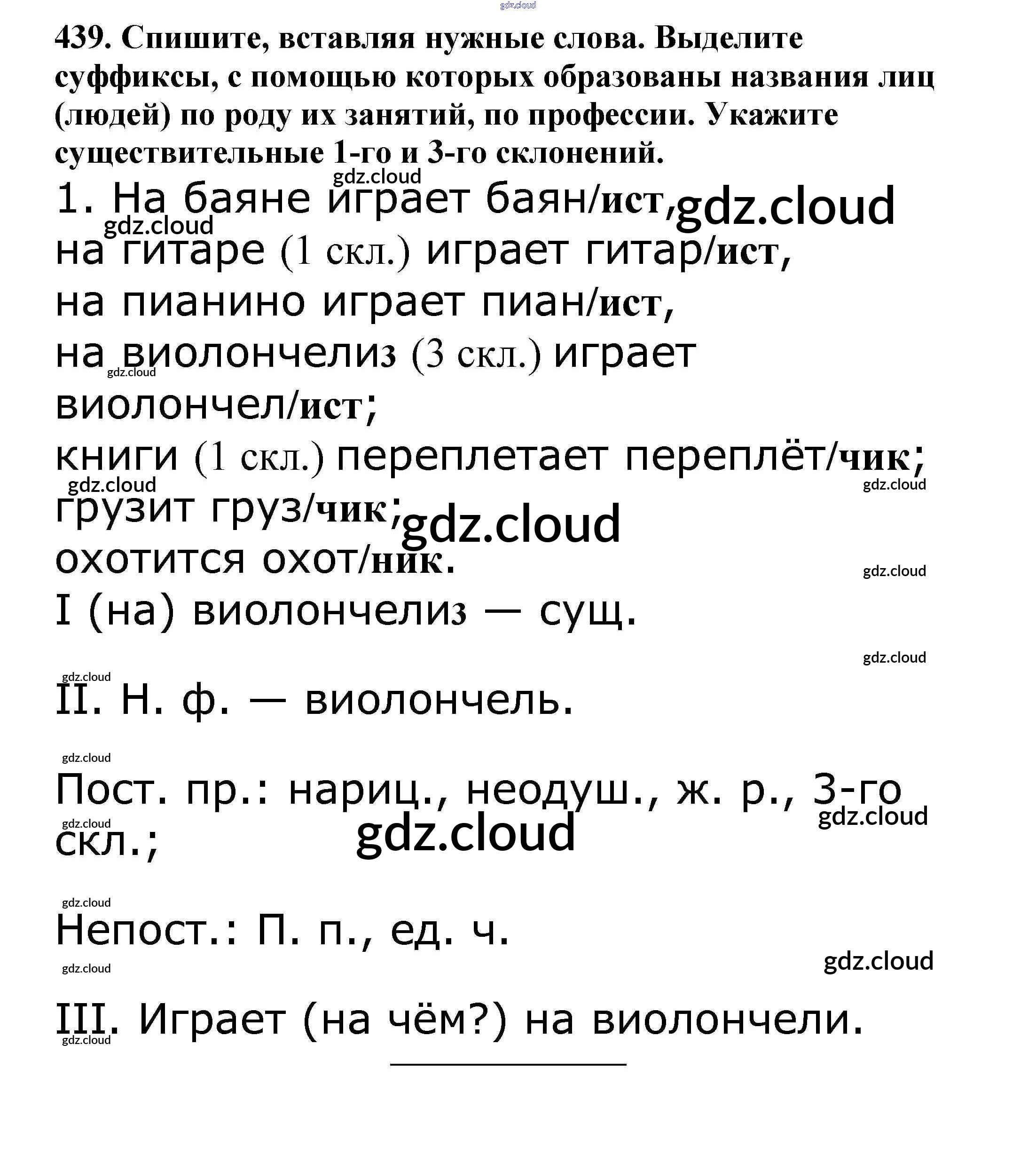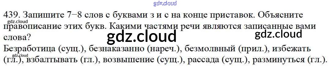 Ответ на задание 439 Учебник Русский язык за 5 (пятый) класс Баранов, Ладыженская, Тростенцова, Кулибаба, Григорян 2016, 2019 Часть 1, 2