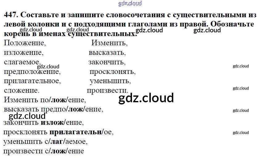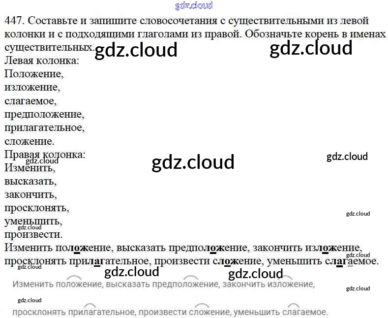 Ответ на задание 447 Учебник Русский язык за 5 (пятый) класс Баранов, Ладыженская, Тростенцова, Кулибаба, Григорян 2016, 2019 Часть 1, 2