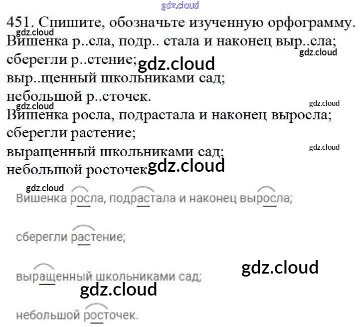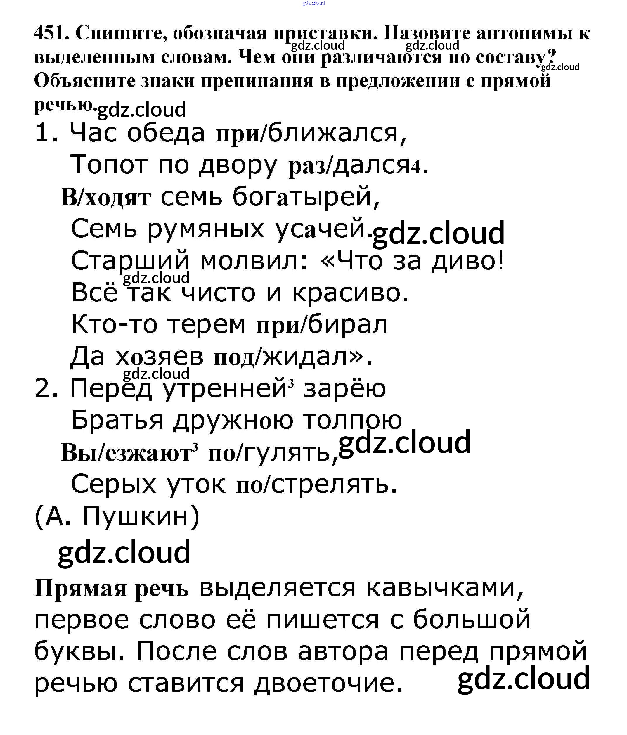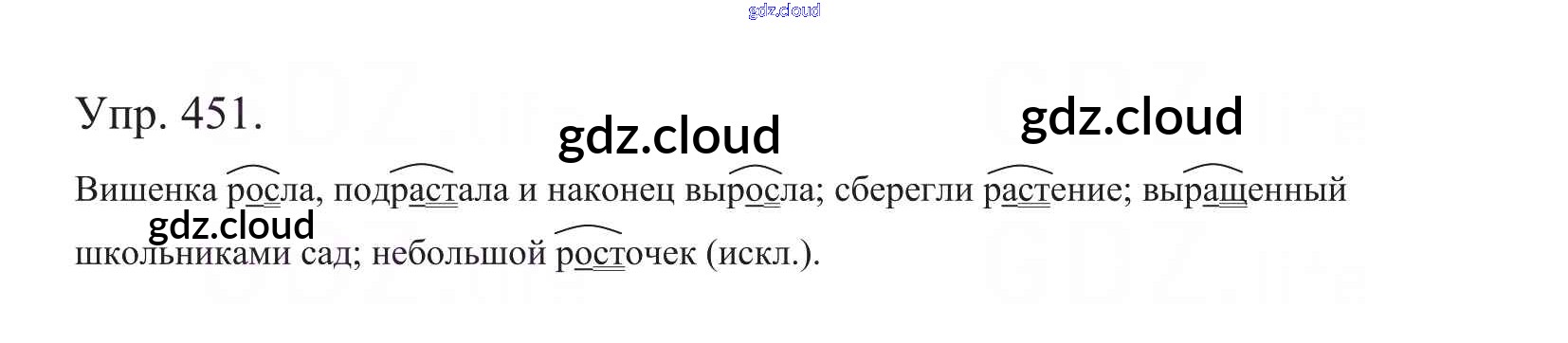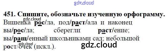 Ответ на задание 451 Учебник Русский язык за 5 (пятый) класс Баранов, Ладыженская, Тростенцова, Кулибаба, Григорян 2016, 2019 Часть 1, 2