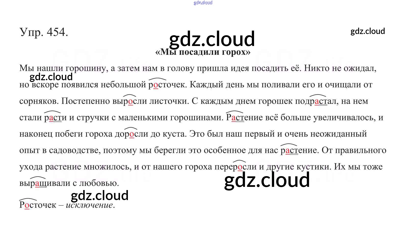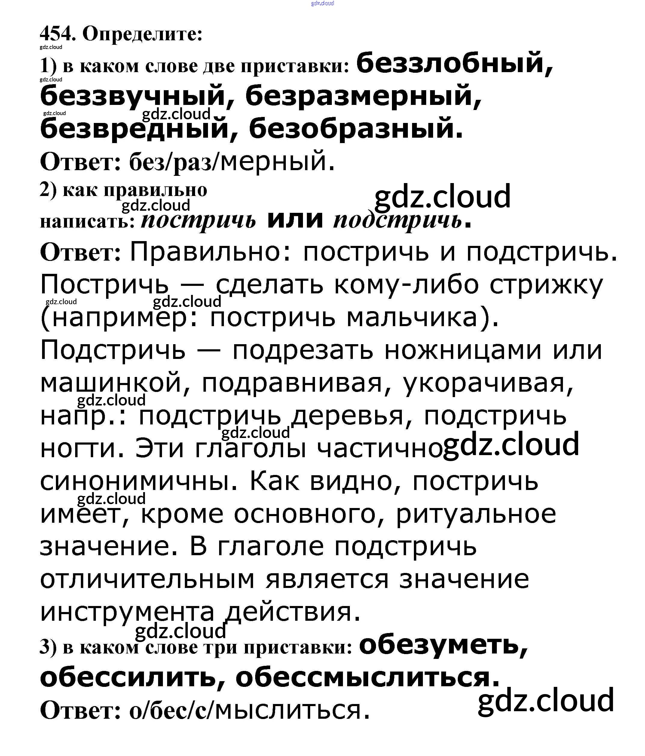 Ответ на задание 454 Учебник Русский язык за 5 (пятый) класс Баранов, Ладыженская, Тростенцова, Кулибаба, Григорян 2016, 2019 Часть 1, 2