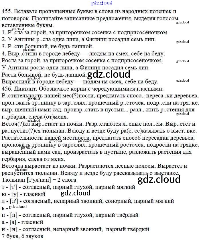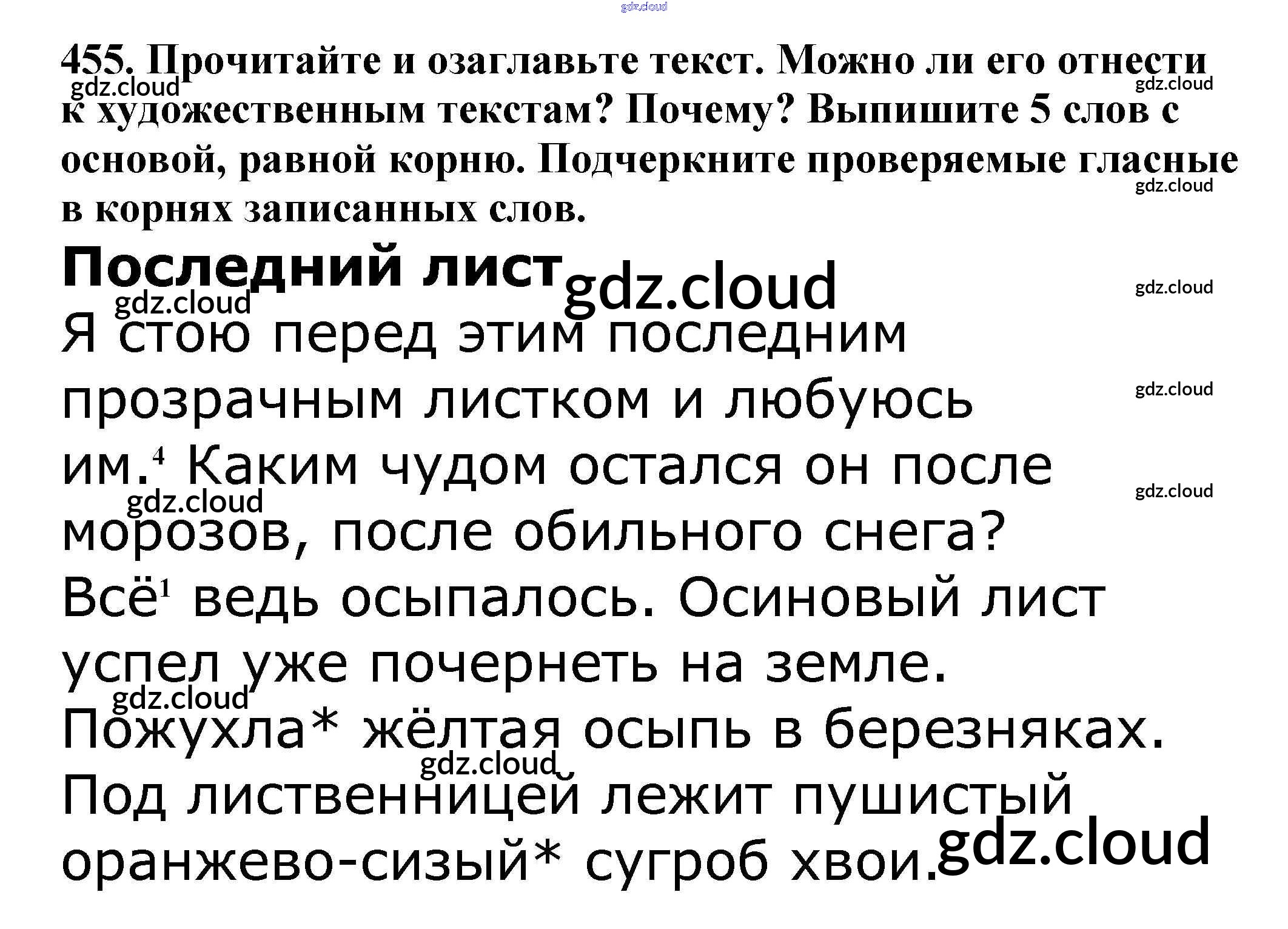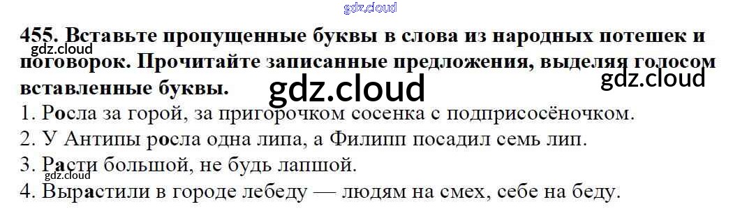 Ответ на задание 455 Учебник Русский язык за 5 (пятый) класс Баранов, Ладыженская, Тростенцова, Кулибаба, Григорян 2016, 2019 Часть 1, 2