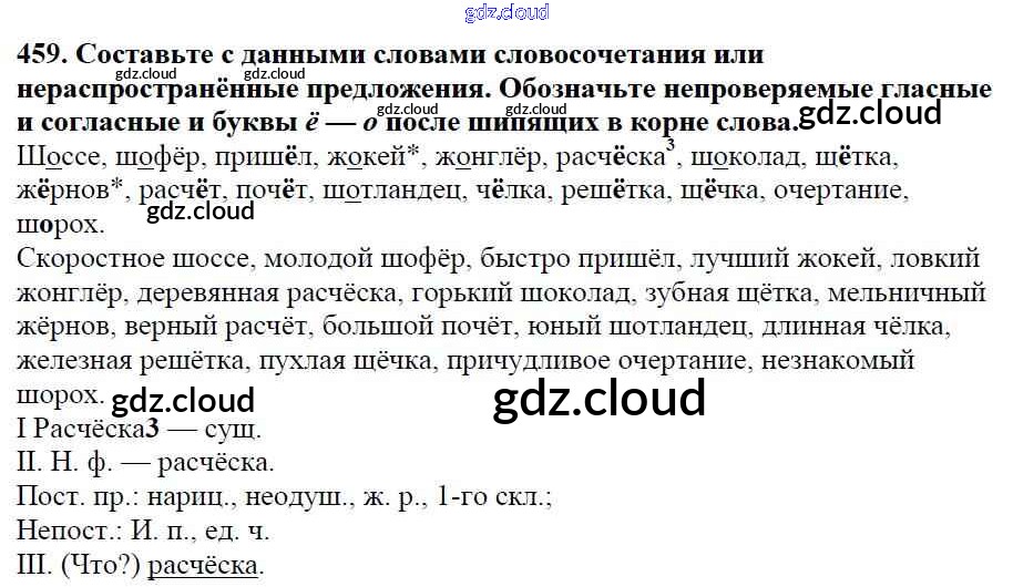 Ответ на задание 459 Учебник Русский язык за 5 (пятый) класс Баранов, Ладыженская, Тростенцова, Кулибаба, Григорян 2016, 2019 Часть 1, 2