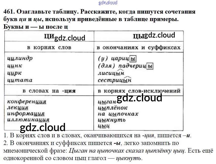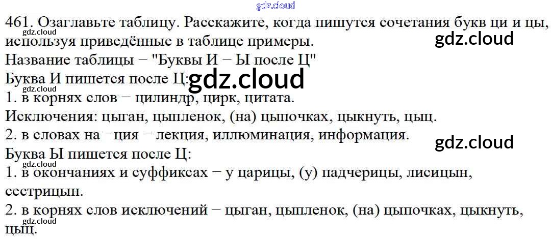 Ответ на задание 461 Учебник Русский язык за 5 (пятый) класс Баранов, Ладыженская, Тростенцова, Кулибаба, Григорян 2016, 2019 Часть 1, 2