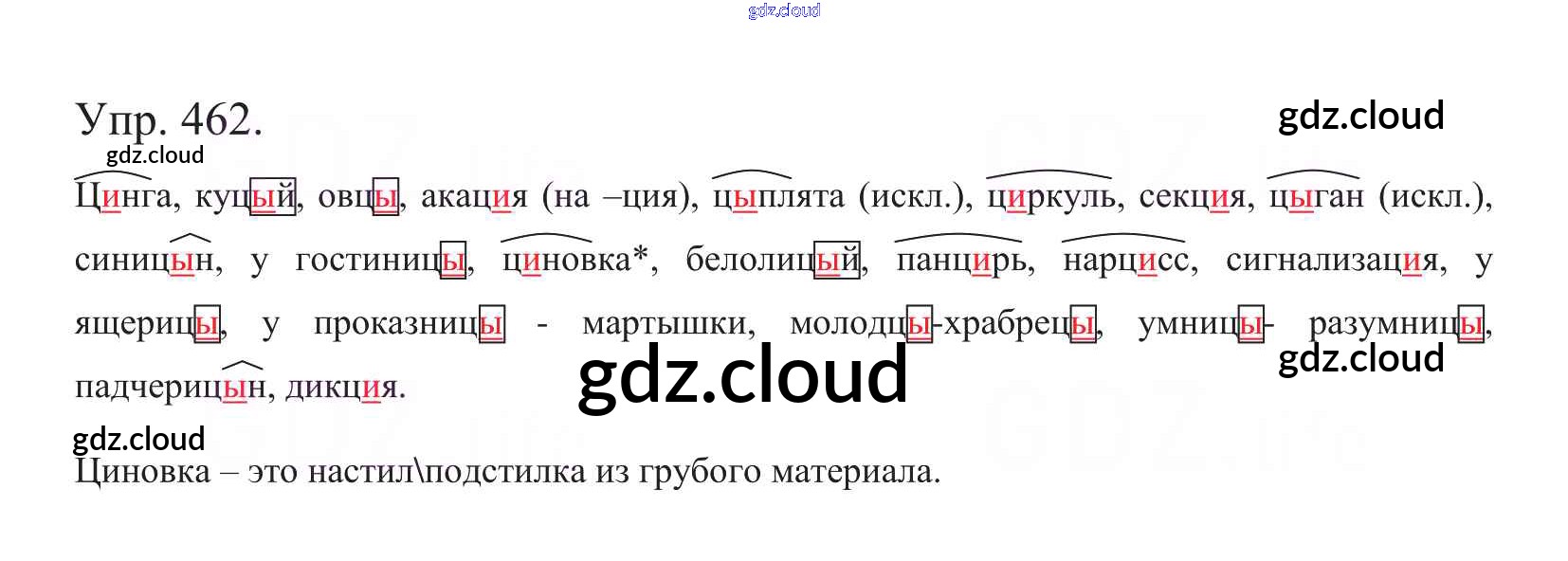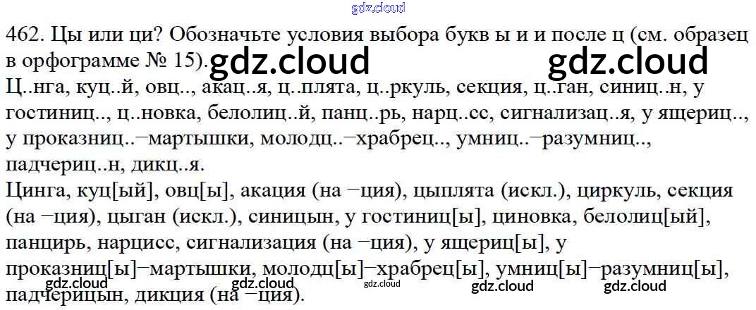 Ответ на задание 462 Учебник Русский язык за 5 (пятый) класс Баранов, Ладыженская, Тростенцова, Кулибаба, Григорян 2016, 2019 Часть 1, 2
