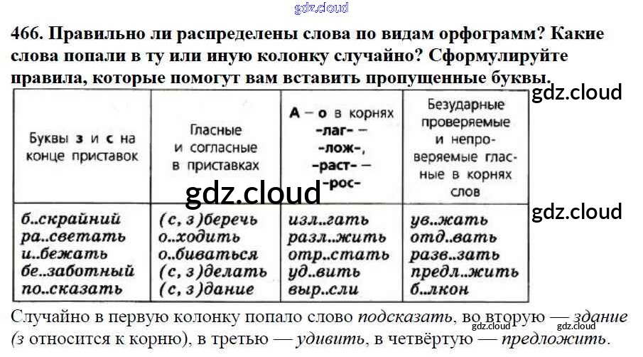 Ответ на задание 466 Учебник Русский язык за 5 (пятый) класс Баранов, Ладыженская, Тростенцова, Кулибаба, Григорян 2016, 2019 Часть 1, 2