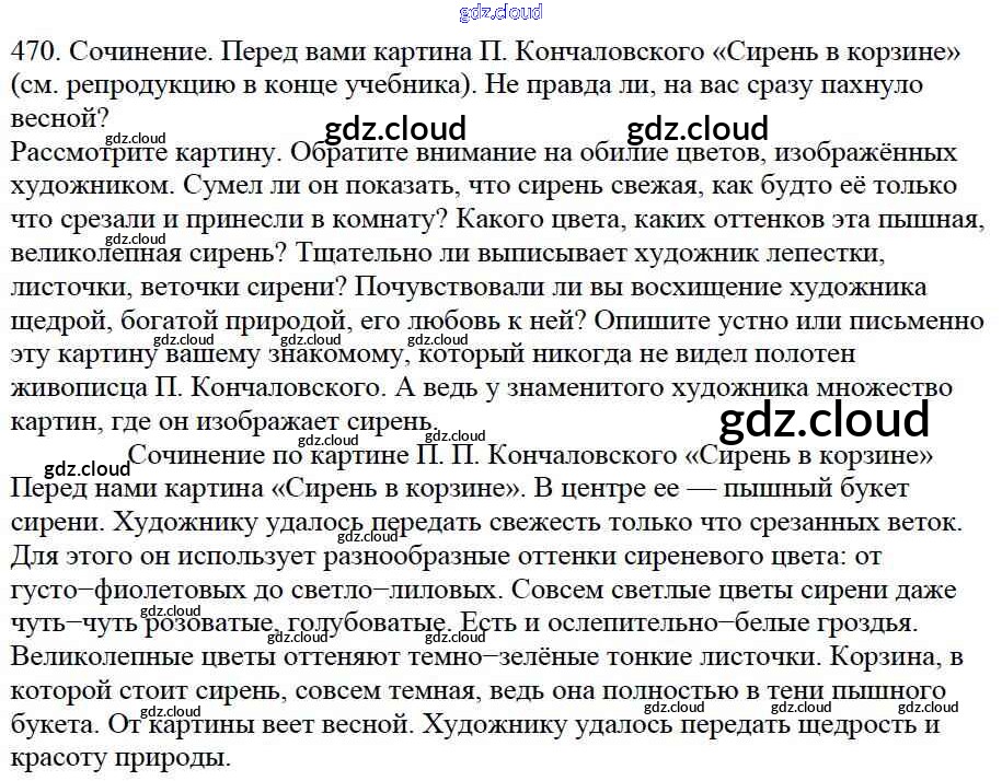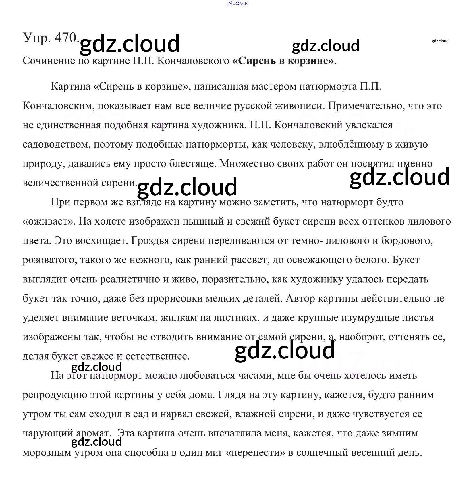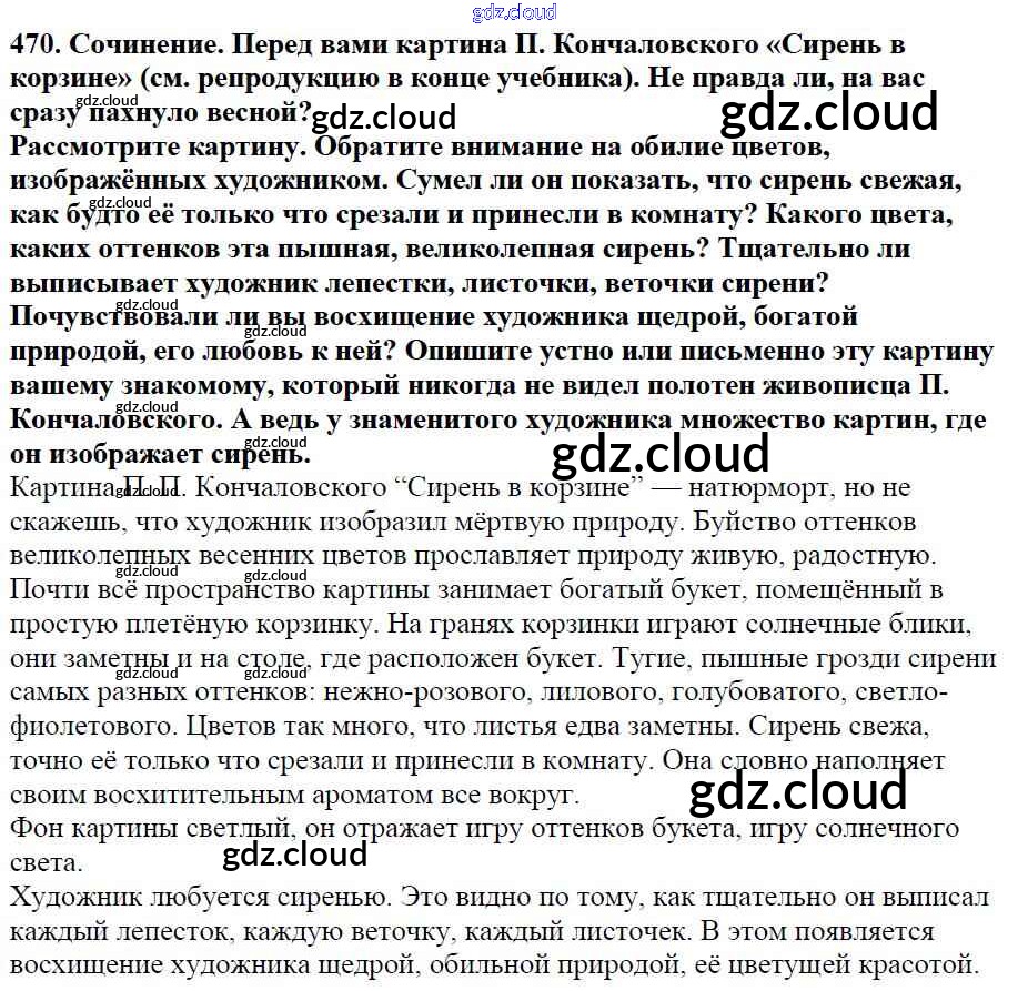 Ответ на задание 470 Учебник Русский язык за 5 (пятый) класс Баранов, Ладыженская, Тростенцова, Кулибаба, Григорян 2016, 2019 Часть 1, 2