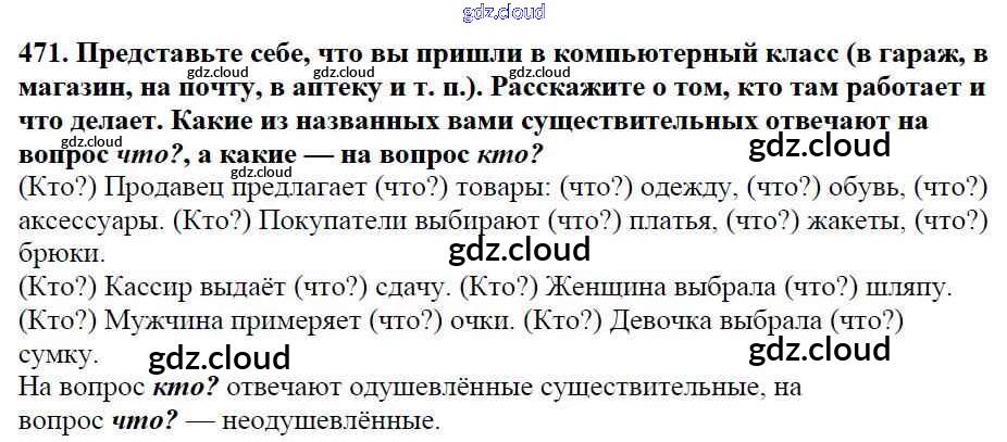 Ответ на задание 471 Учебник Русский язык за 5 (пятый) класс Баранов, Ладыженская, Тростенцова, Кулибаба, Григорян 2016, 2019 Часть 1, 2