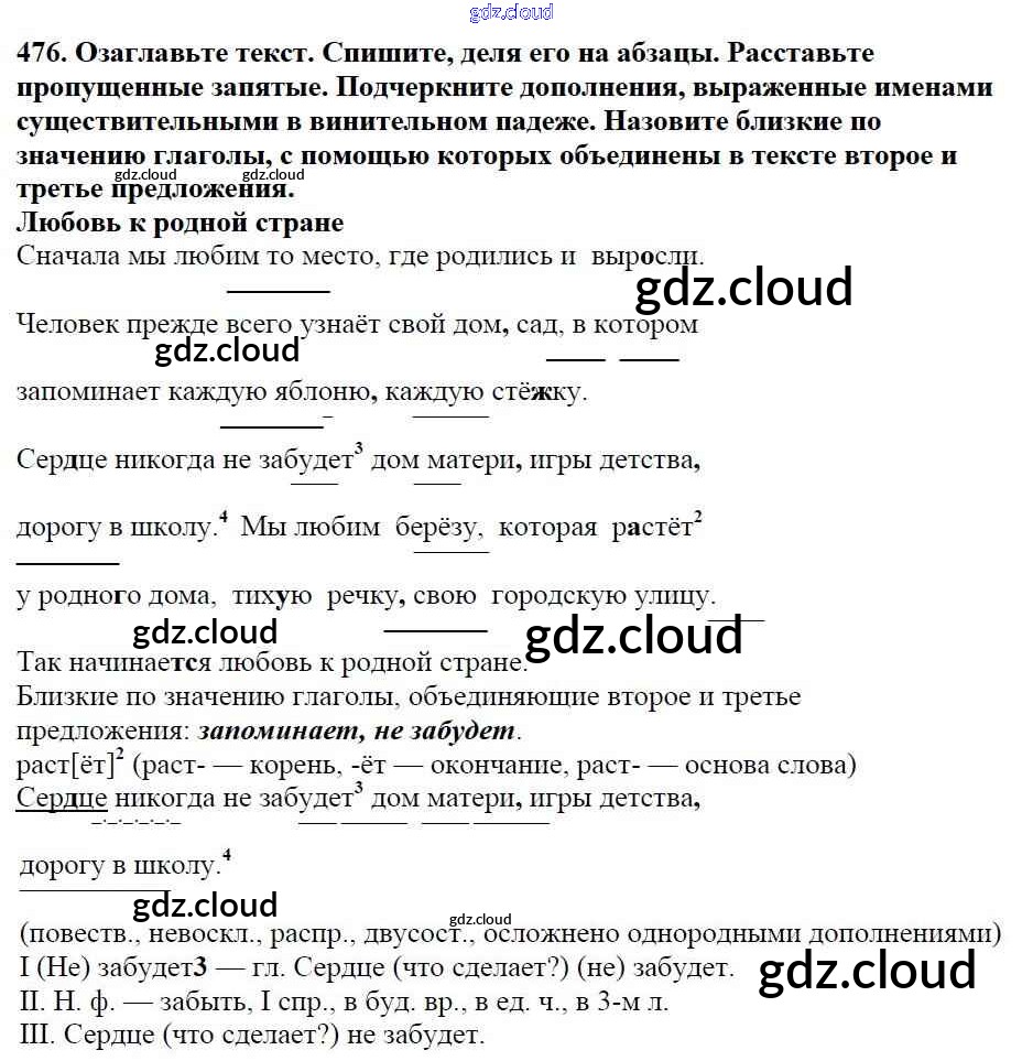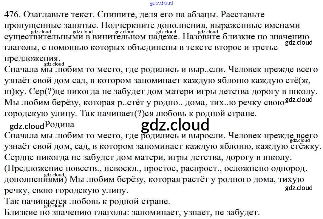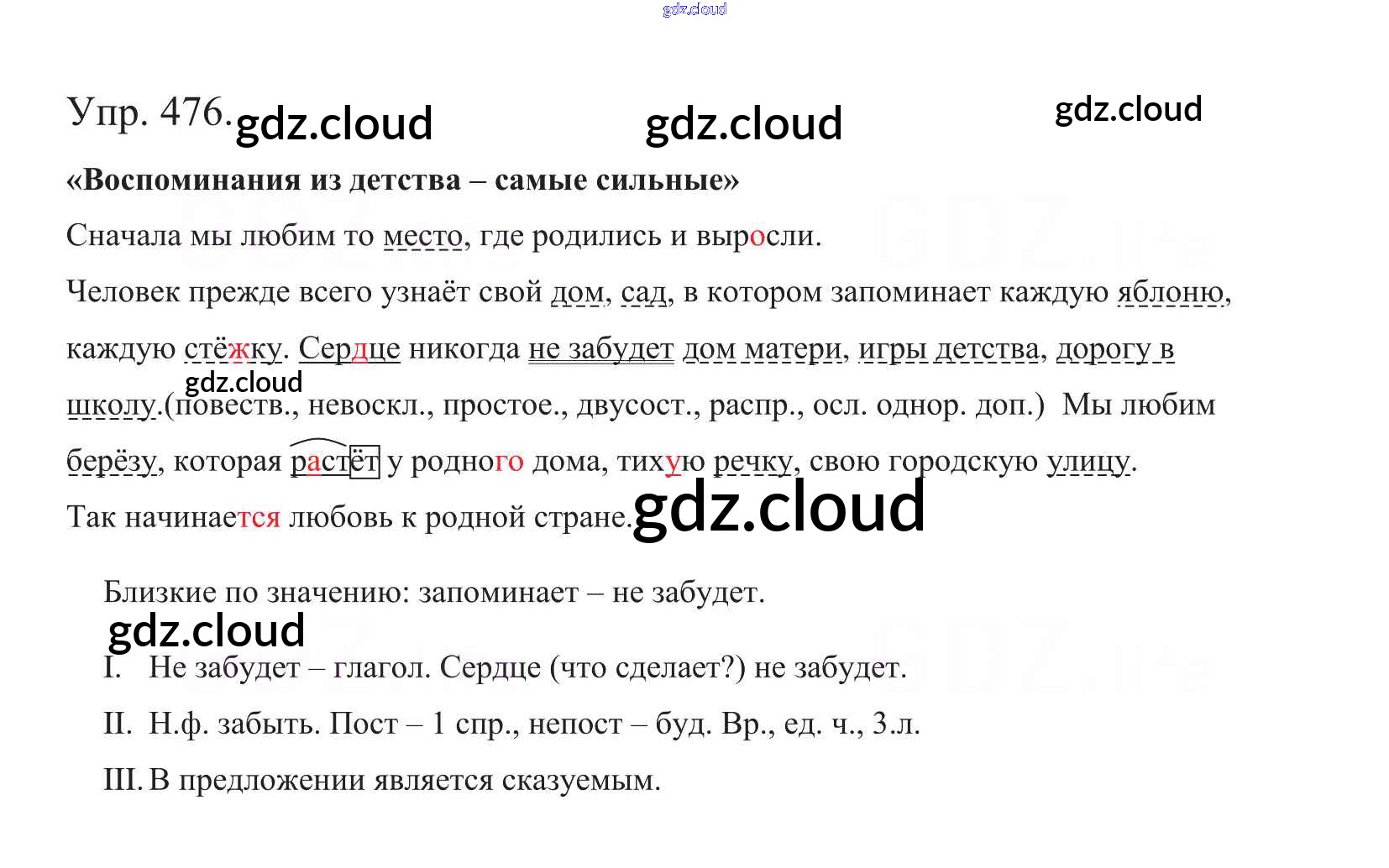 Ответ на задание 476 Учебник Русский язык за 5 (пятый) класс Баранов, Ладыженская, Тростенцова, Кулибаба, Григорян 2016, 2019 Часть 1, 2