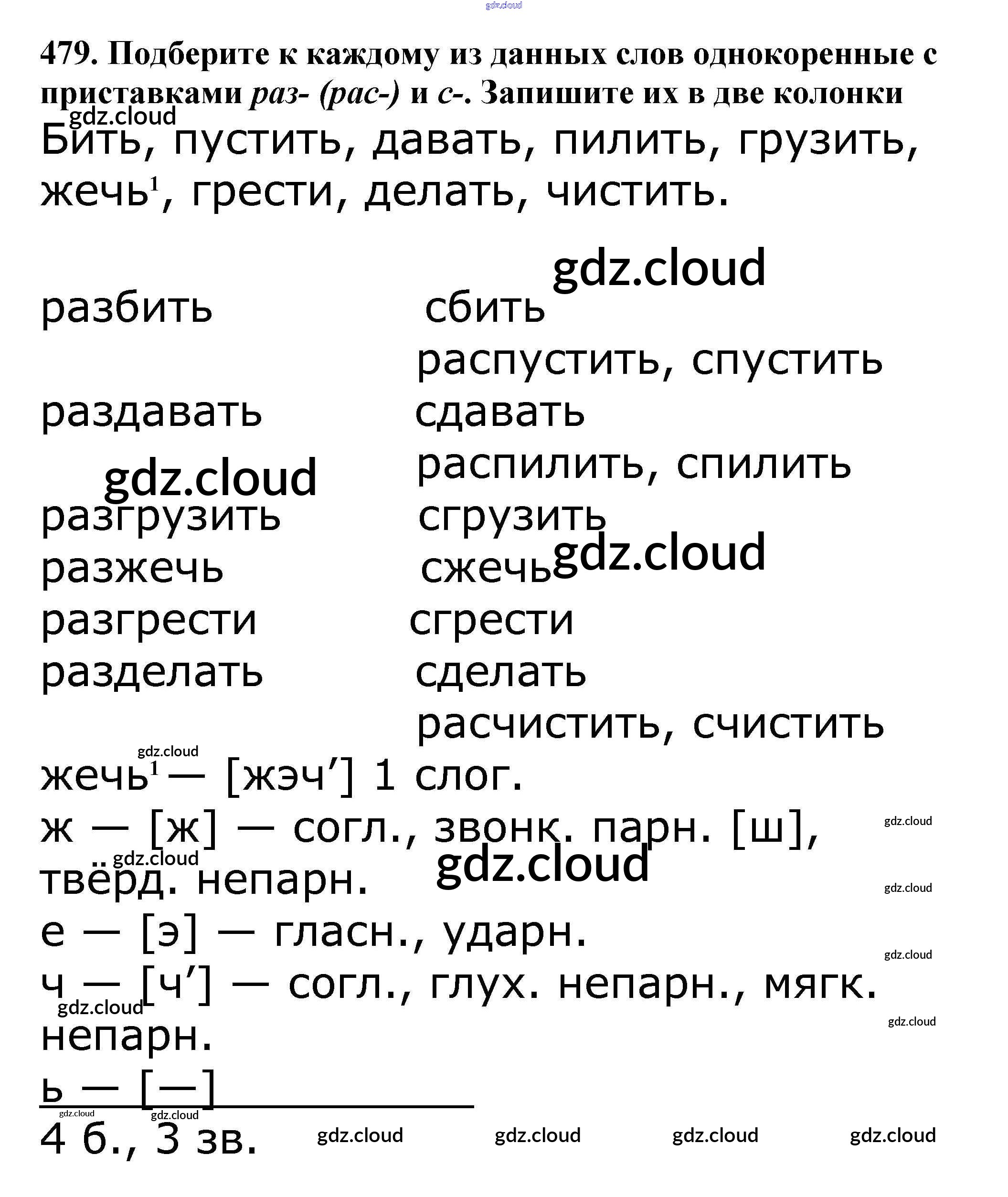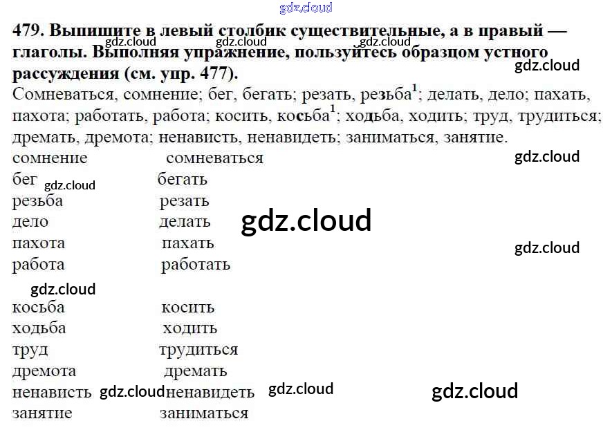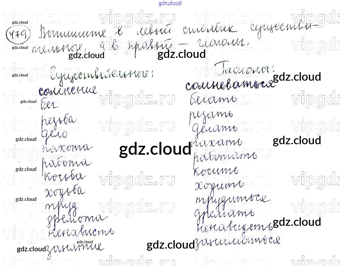 Ответ на задание 479 Учебник Русский язык за 5 (пятый) класс Баранов, Ладыженская, Тростенцова, Кулибаба, Григорян 2016, 2019 Часть 1, 2