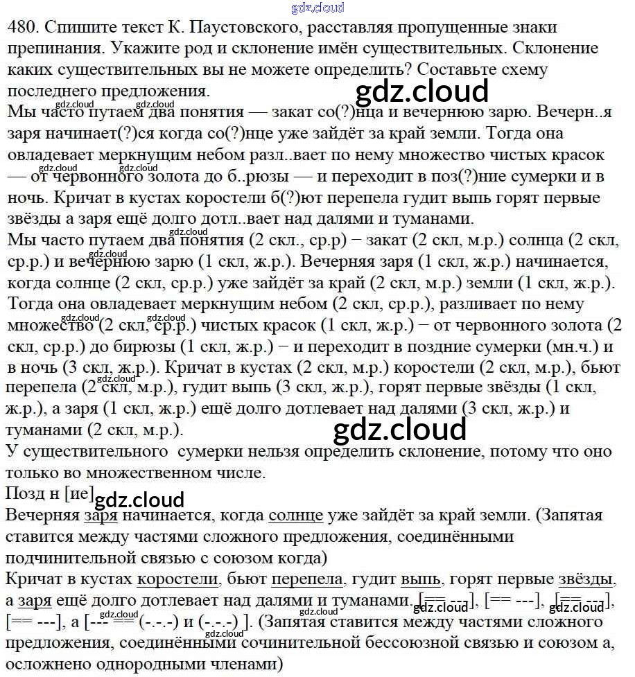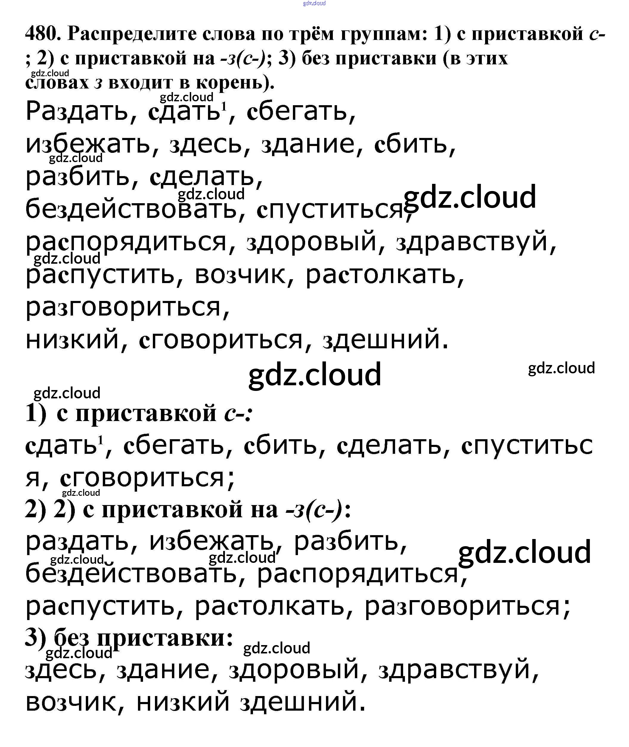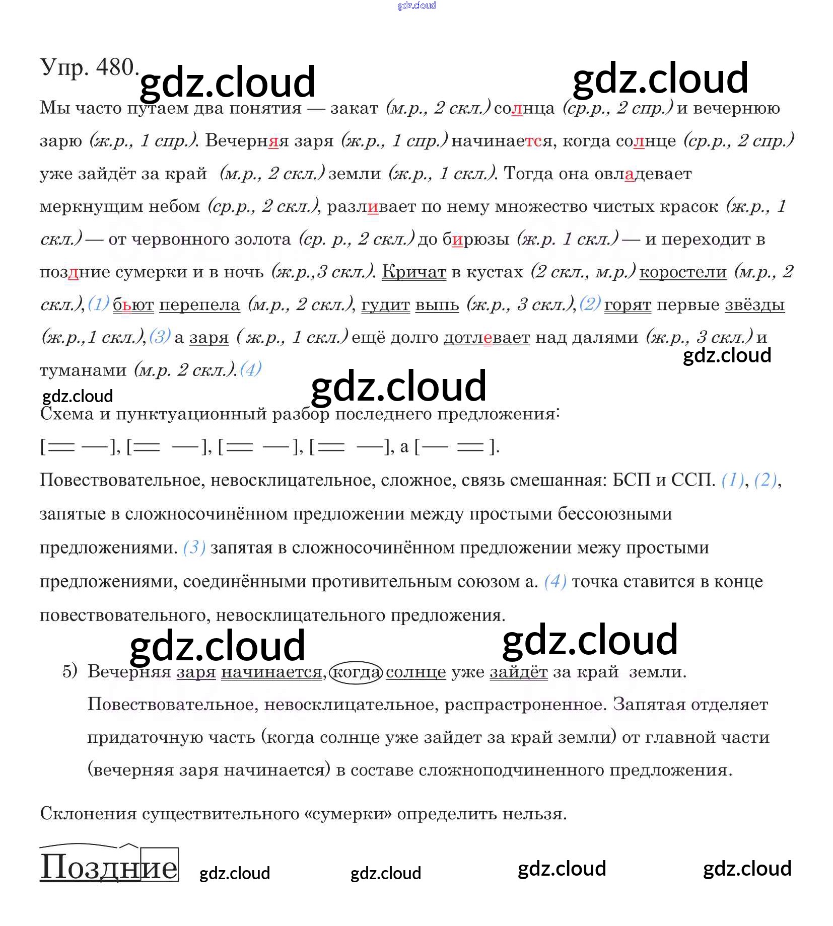Ответ на задание 480 Учебник Русский язык за 5 (пятый) класс Баранов, Ладыженская, Тростенцова, Кулибаба, Григорян 2016, 2019 Часть 1, 2