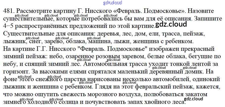 Ответ на задание 481 Учебник Русский язык за 5 (пятый) класс Баранов, Ладыженская, Тростенцова, Кулибаба, Григорян 2016, 2019 Часть 1, 2