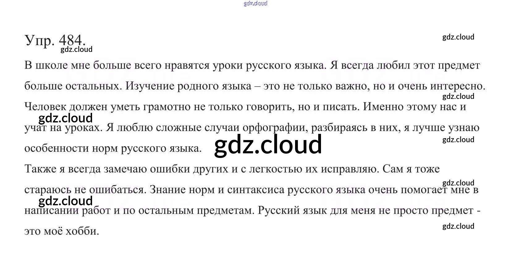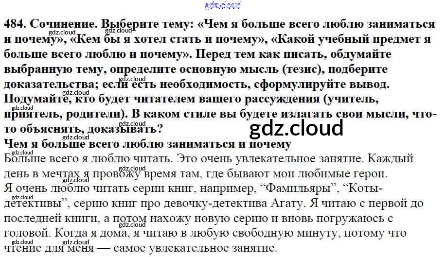 Ответ на задание 484 Учебник Русский язык за 5 (пятый) класс Баранов, Ладыженская, Тростенцова, Кулибаба, Григорян 2016, 2019 Часть 1, 2