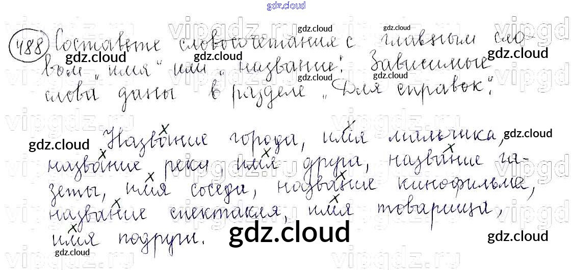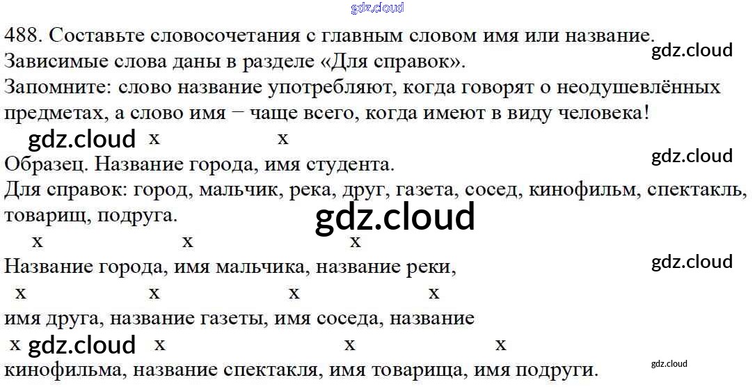 Ответ на задание 488 Учебник Русский язык за 5 (пятый) класс Баранов, Ладыженская, Тростенцова, Кулибаба, Григорян 2016, 2019 Часть 1, 2