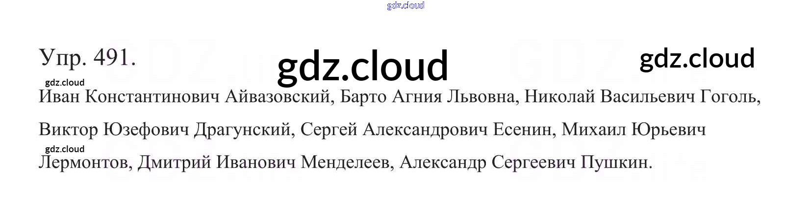 Ответ на задание 491 Учебник Русский язык за 5 (пятый) класс Баранов, Ладыженская, Тростенцова, Кулибаба, Григорян 2016, 2019 Часть 1, 2