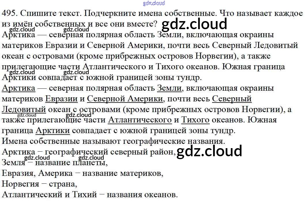 Ответ на задание 495 Учебник Русский язык за 5 (пятый) класс Баранов, Ладыженская, Тростенцова, Кулибаба, Григорян 2016, 2019 Часть 1, 2