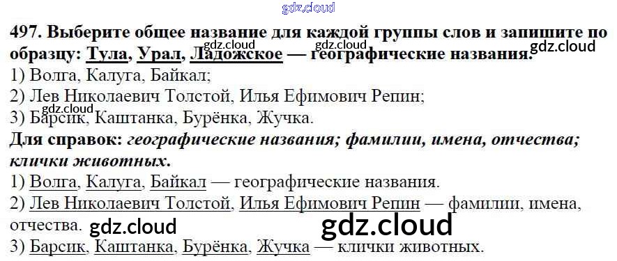 Ответ на задание 497 Учебник Русский язык за 5 (пятый) класс Баранов, Ладыженская, Тростенцова, Кулибаба, Григорян 2016, 2019 Часть 1, 2