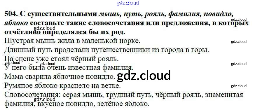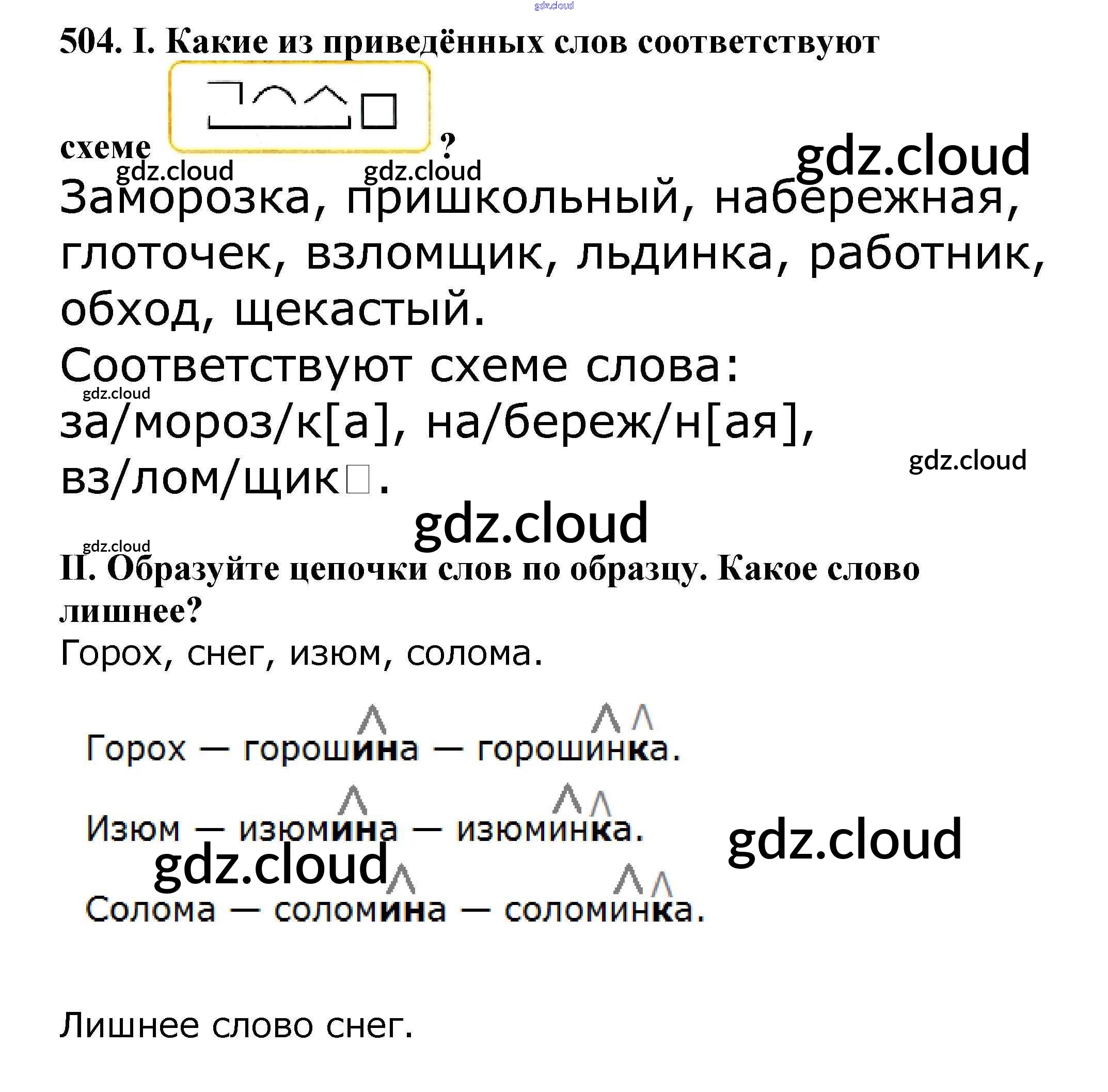 Ответ на задание 504 Учебник Русский язык за 5 (пятый) класс Баранов, Ладыженская, Тростенцова, Кулибаба, Григорян 2016, 2019 Часть 1, 2