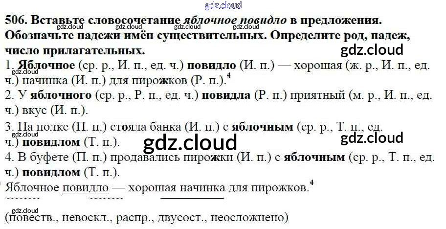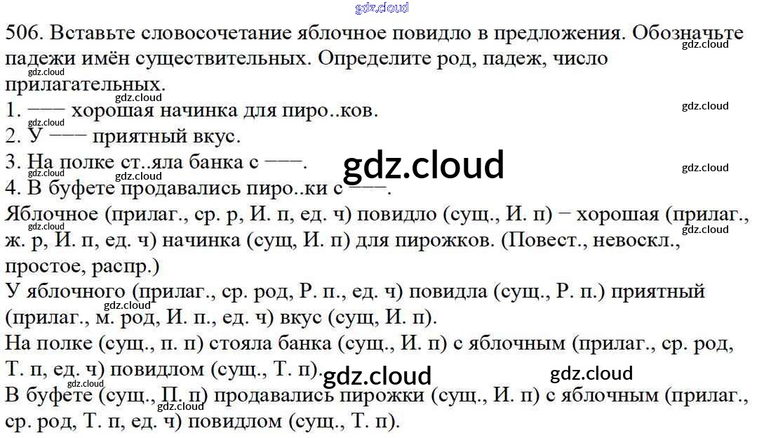 Ответ на задание 506 Учебник Русский язык за 5 (пятый) класс Баранов, Ладыженская, Тростенцова, Кулибаба, Григорян 2016, 2019 Часть 1, 2