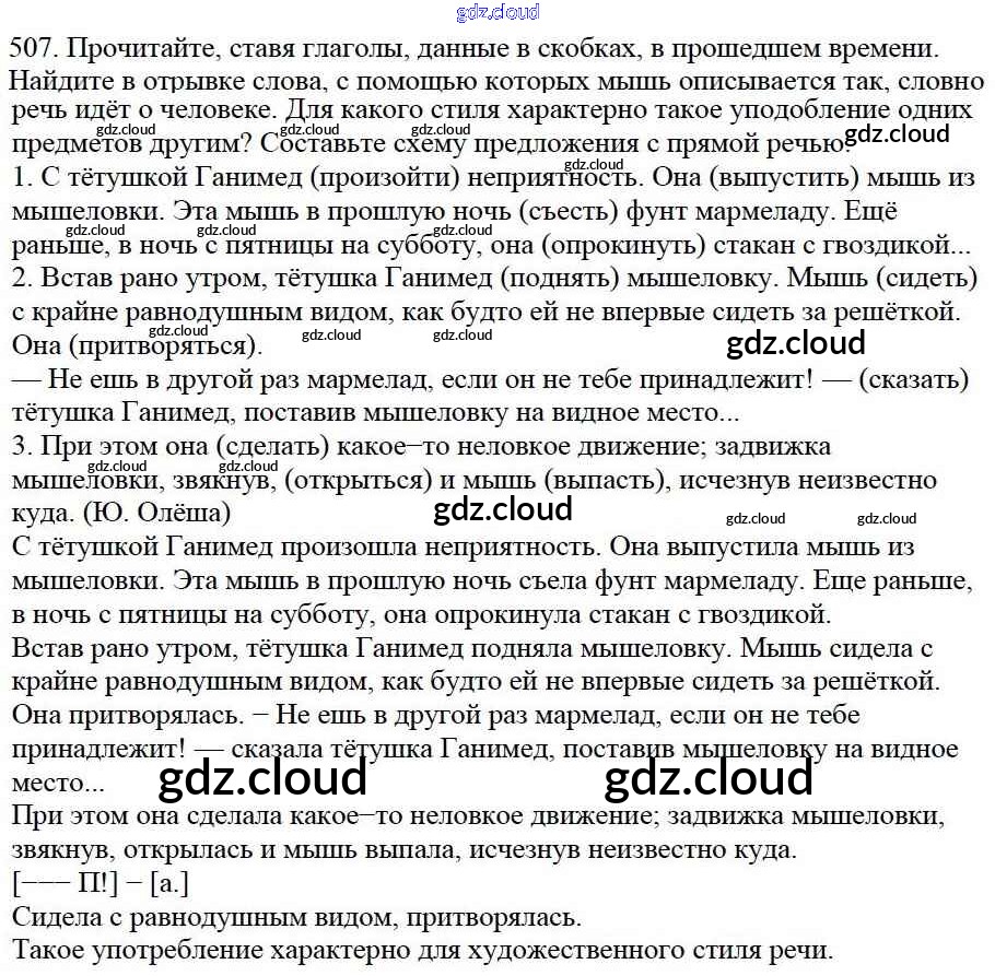Ответ на задание 507 Учебник Русский язык за 5 (пятый) класс Баранов, Ладыженская, Тростенцова, Кулибаба, Григорян 2016, 2019 Часть 1, 2