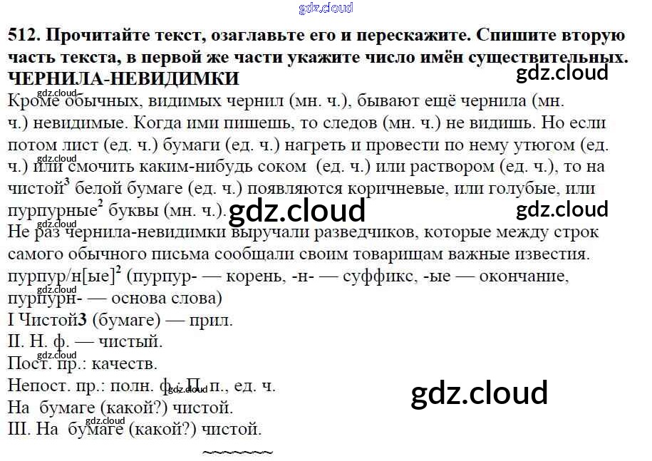 Ответ на задание 512 Учебник Русский язык за 5 (пятый) класс Баранов, Ладыженская, Тростенцова, Кулибаба, Григорян 2016, 2019 Часть 1, 2