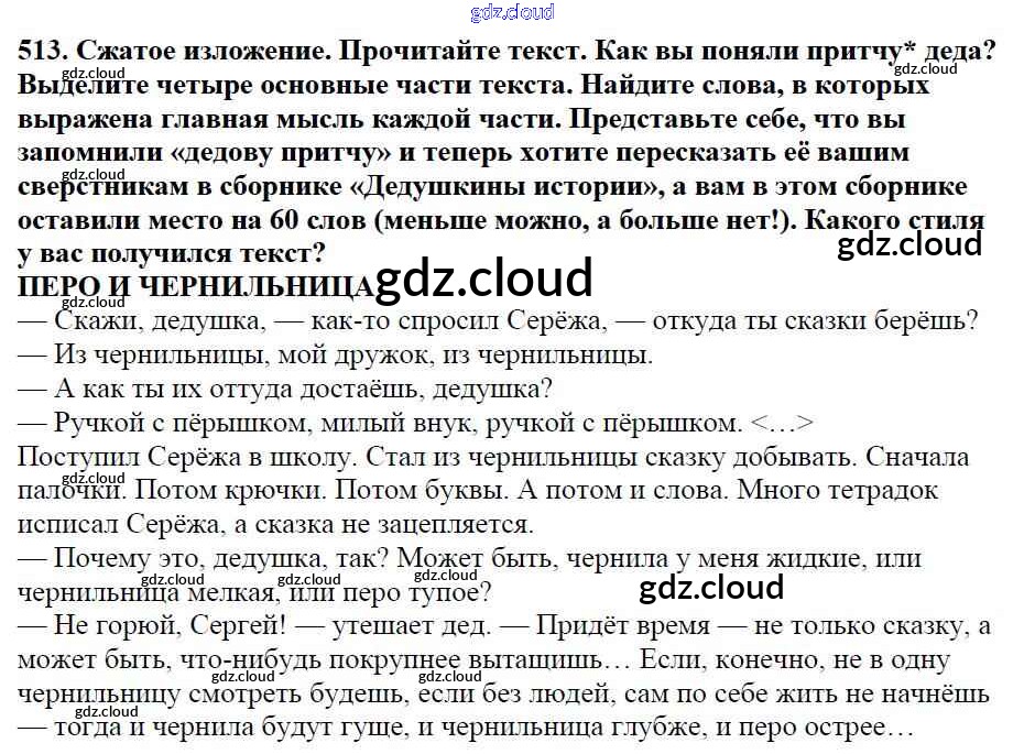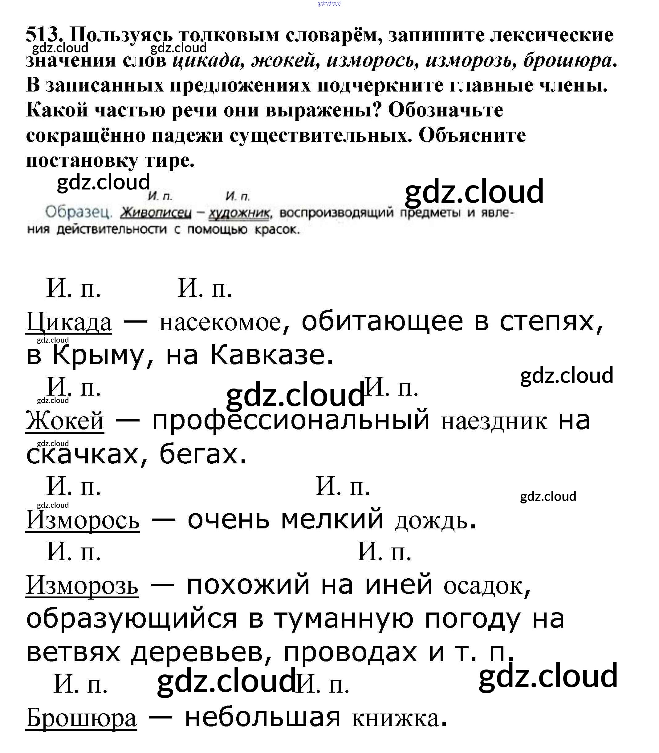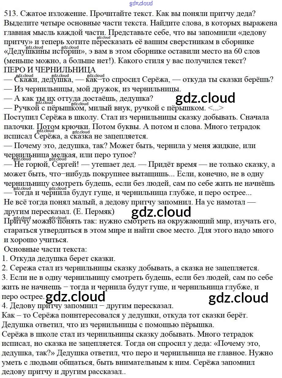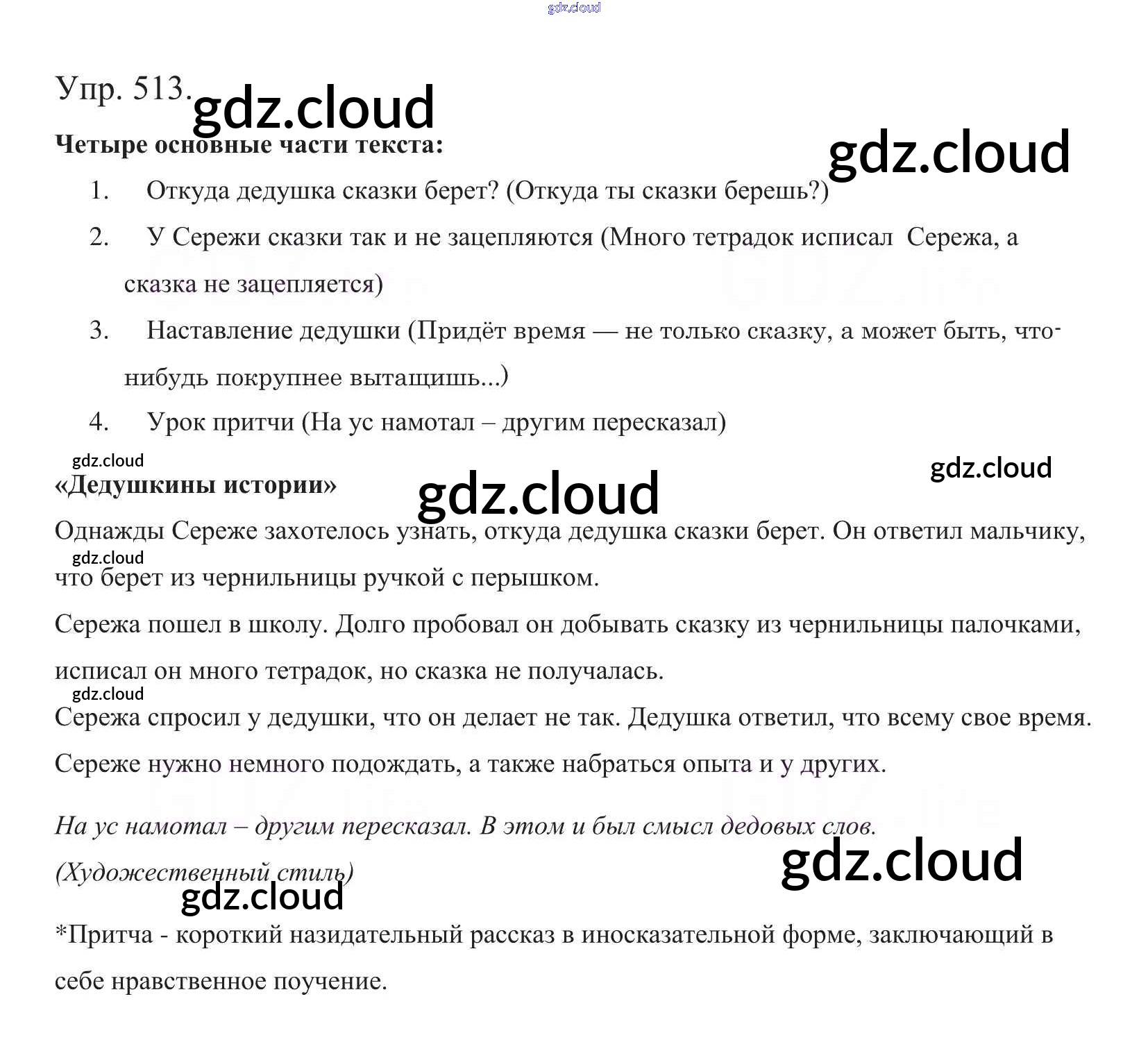 Ответ на задание 513 Учебник Русский язык за 5 (пятый) класс Баранов, Ладыженская, Тростенцова, Кулибаба, Григорян 2016, 2019 Часть 1, 2