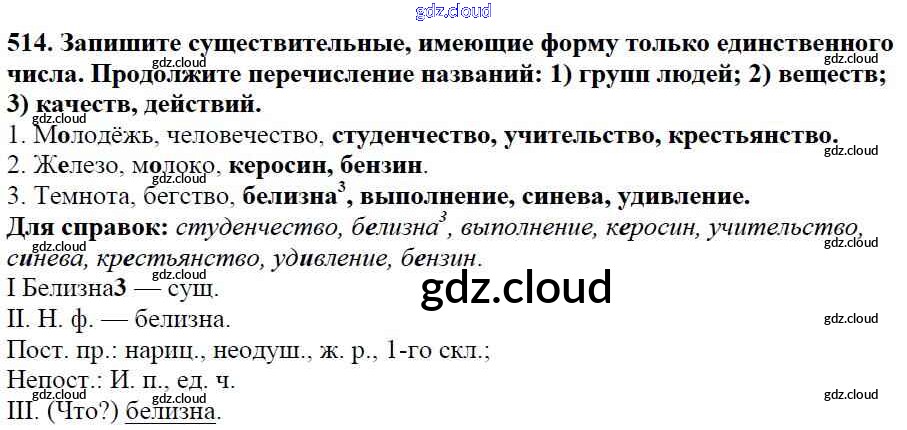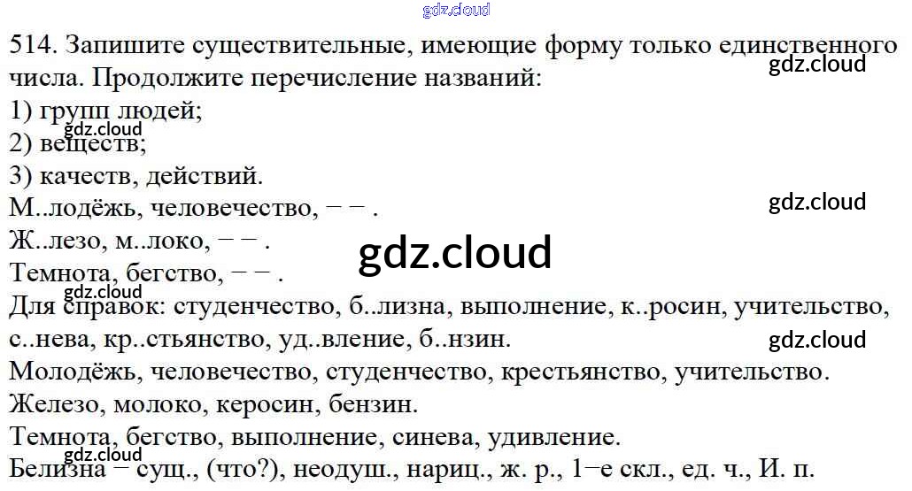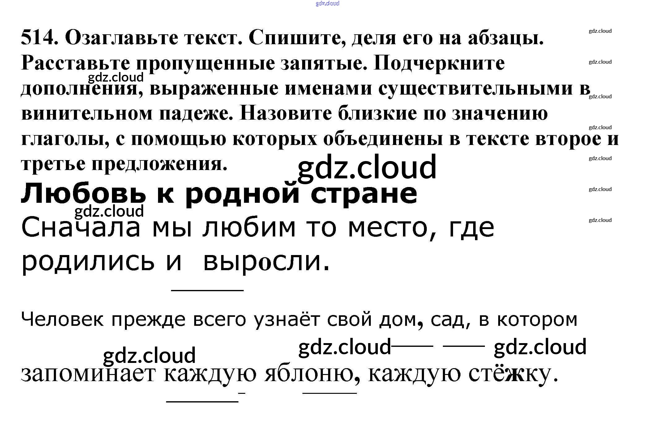 Ответ на задание 514 Учебник Русский язык за 5 (пятый) класс Баранов, Ладыженская, Тростенцова, Кулибаба, Григорян 2016, 2019 Часть 1, 2