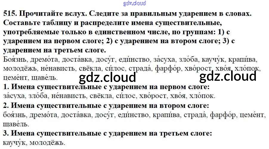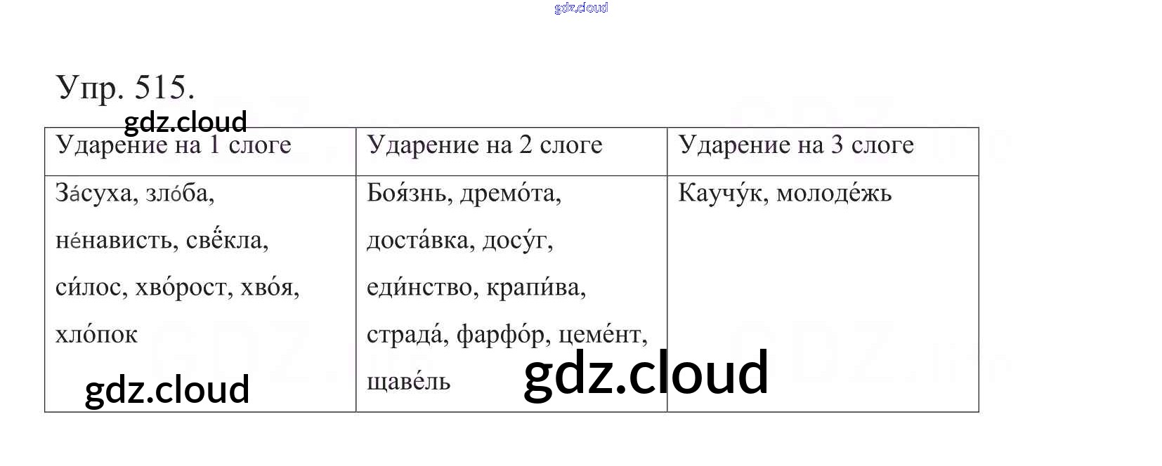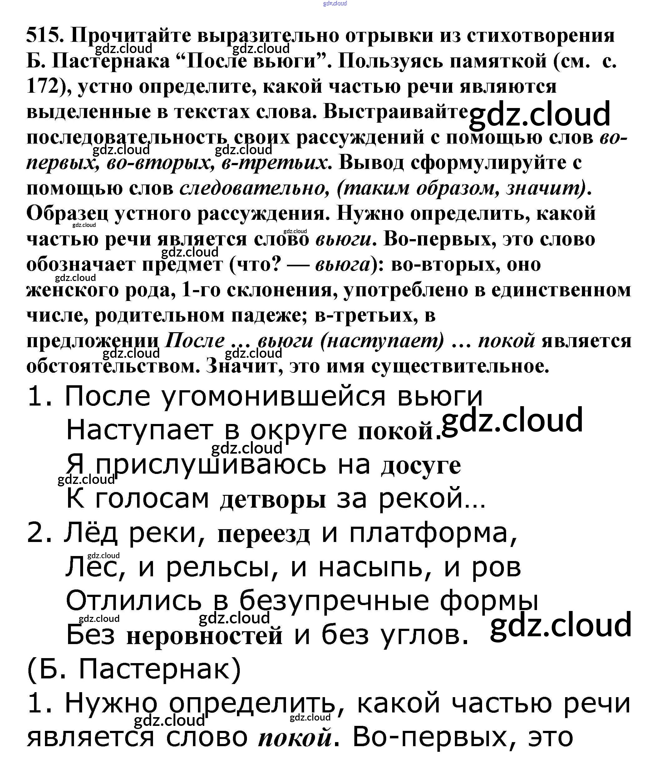 Ответ на задание 515 Учебник Русский язык за 5 (пятый) класс Баранов, Ладыженская, Тростенцова, Кулибаба, Григорян 2016, 2019 Часть 1, 2