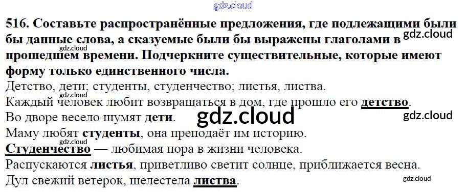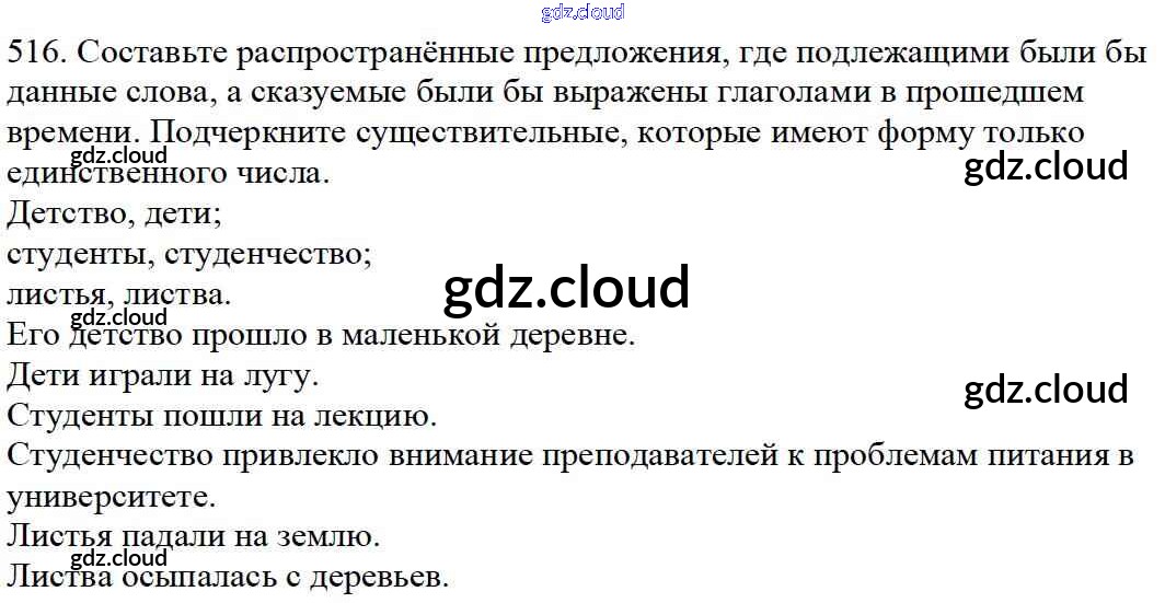 Ответ на задание 516 Учебник Русский язык за 5 (пятый) класс Баранов, Ладыженская, Тростенцова, Кулибаба, Григорян 2016, 2019 Часть 1, 2