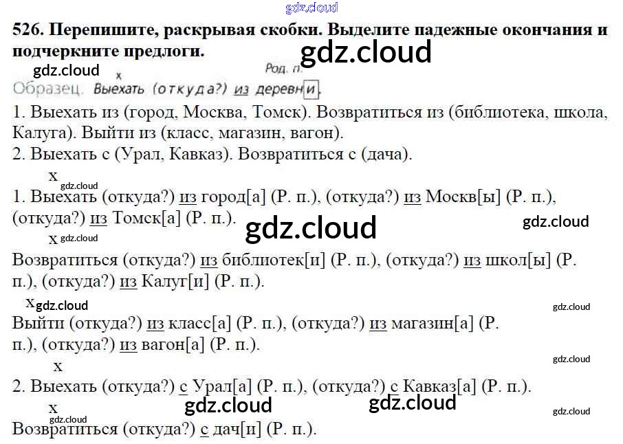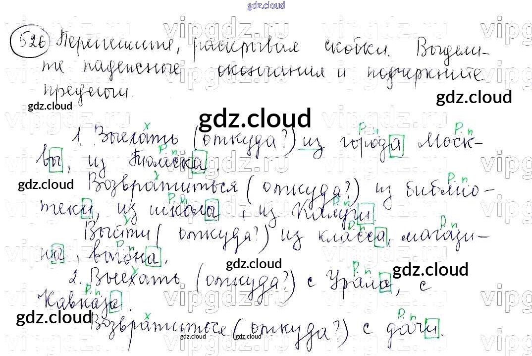 Ответ на задание 526 Учебник Русский язык за 5 (пятый) класс Баранов, Ладыженская, Тростенцова, Кулибаба, Григорян 2016, 2019 Часть 1, 2