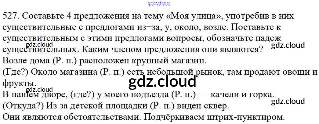 Ответ на задание 527 Учебник Русский язык за 5 (пятый) класс Баранов, Ладыженская, Тростенцова, Кулибаба, Григорян 2016, 2019 Часть 1, 2