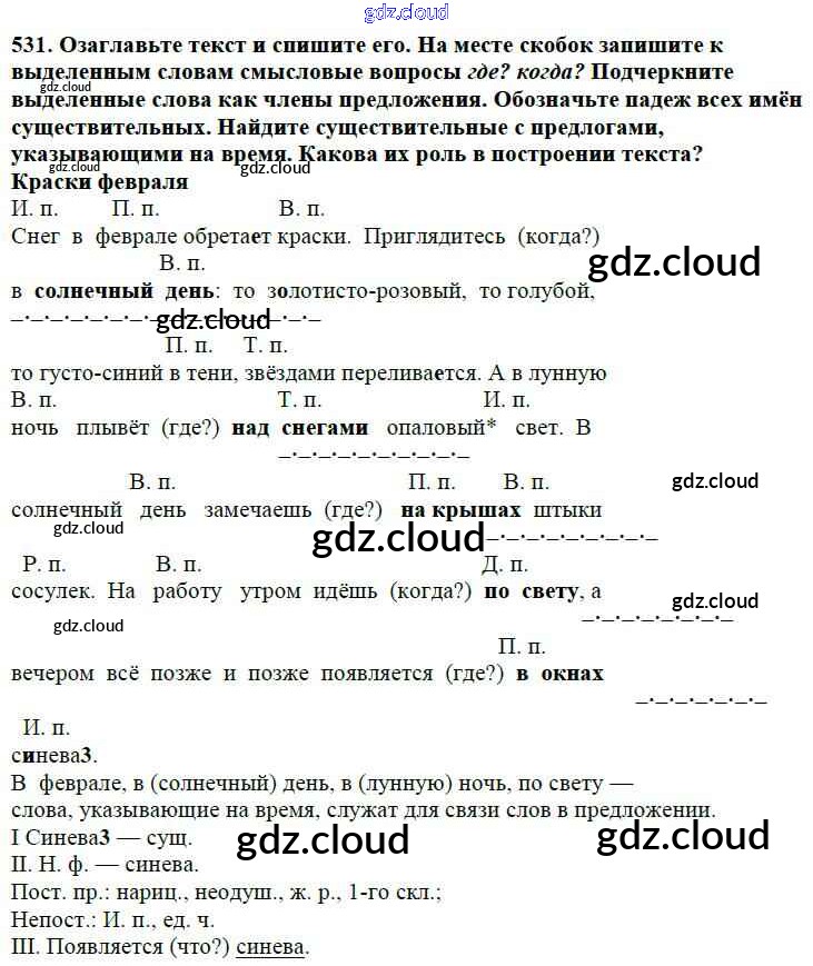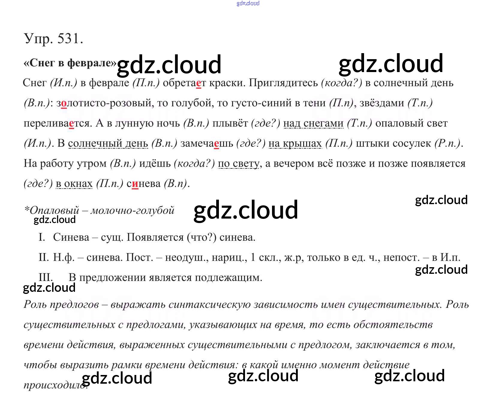Ответ на задание 531 Учебник Русский язык за 5 (пятый) класс Баранов, Ладыженская, Тростенцова, Кулибаба, Григорян 2016, 2019 Часть 1, 2