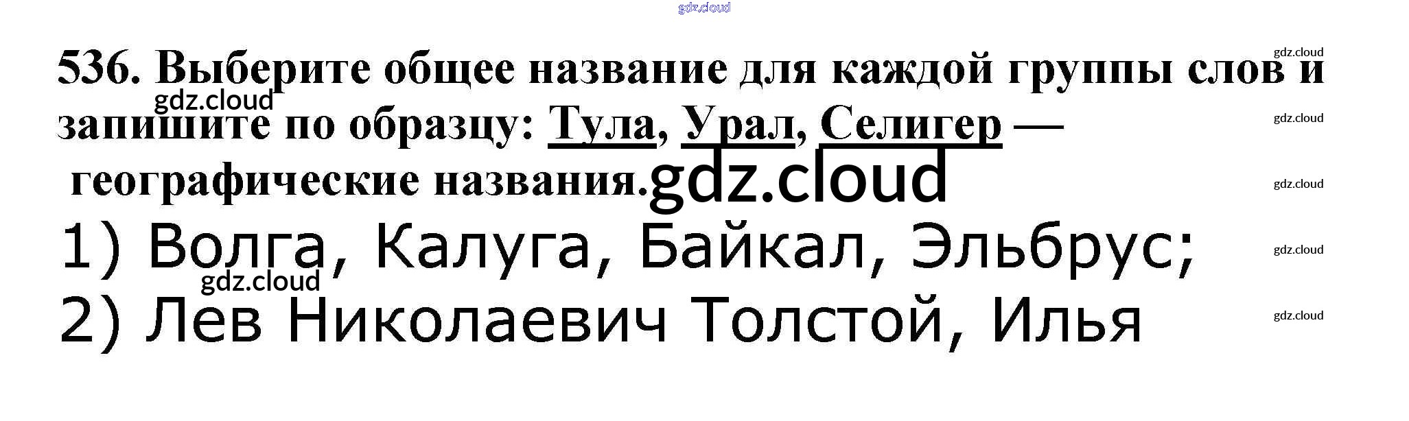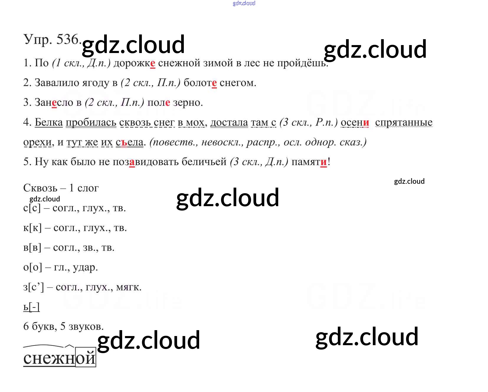 Ответ на задание 536 Учебник Русский язык за 5 (пятый) класс Баранов, Ладыженская, Тростенцова, Кулибаба, Григорян 2016, 2019 Часть 1, 2