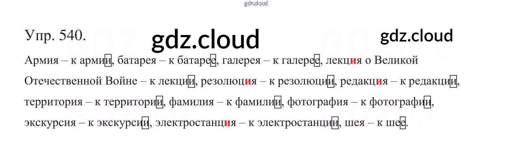 Ответ на задание 540 Учебник Русский язык за 5 (пятый) класс Баранов, Ладыженская, Тростенцова, Кулибаба, Григорян 2016, 2019 Часть 1, 2
