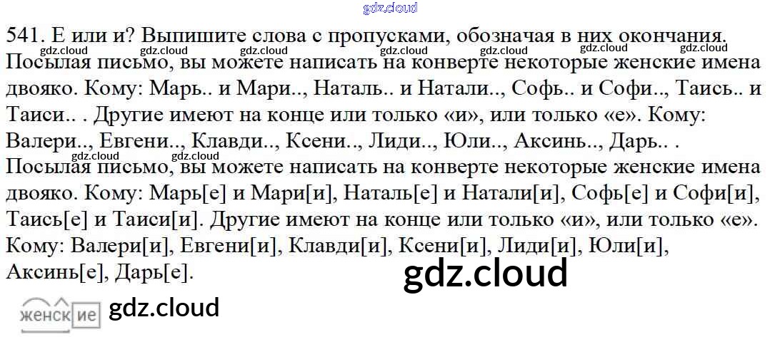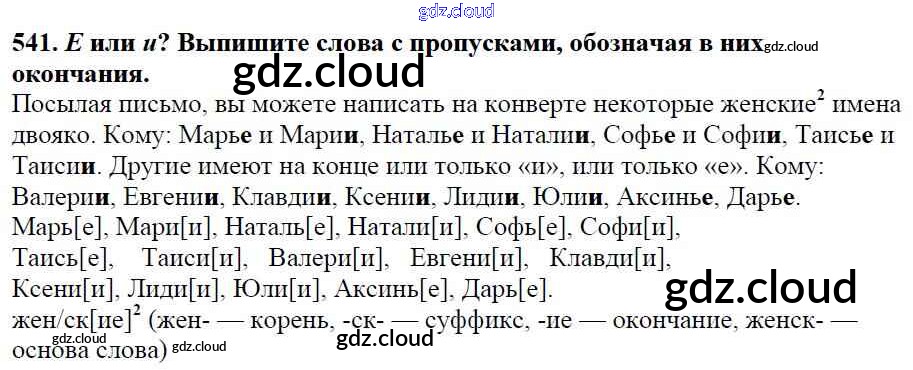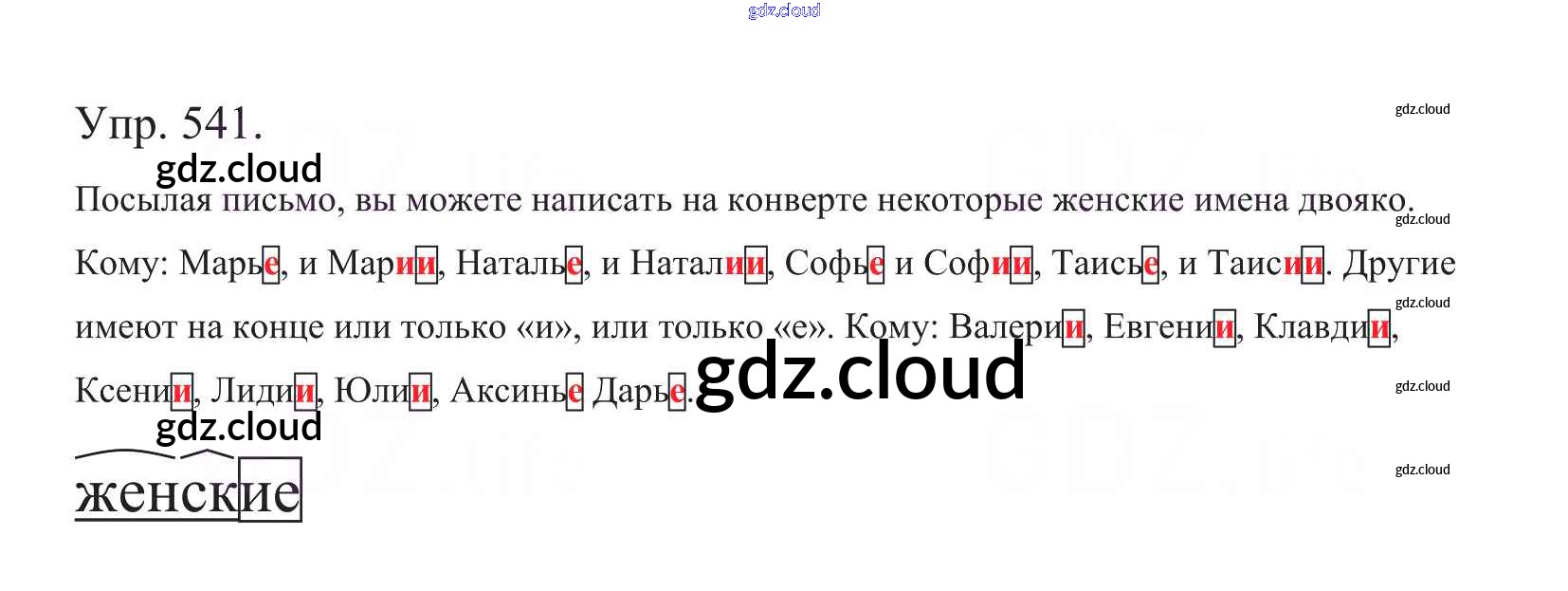 Ответ на задание 541 Учебник Русский язык за 5 (пятый) класс Баранов, Ладыженская, Тростенцова, Кулибаба, Григорян 2016, 2019 Часть 1, 2