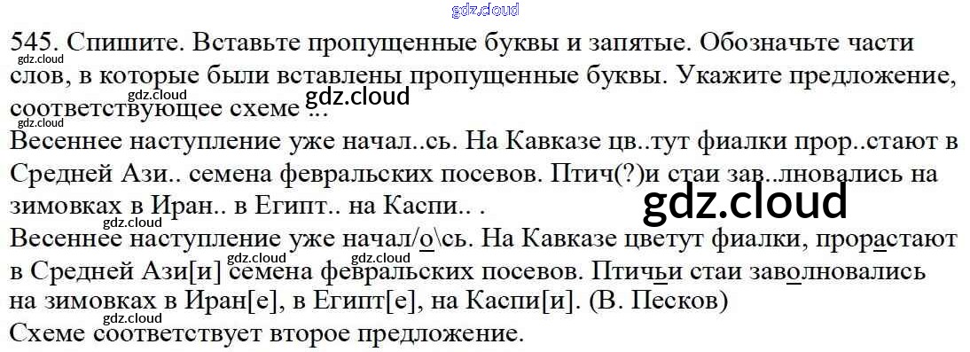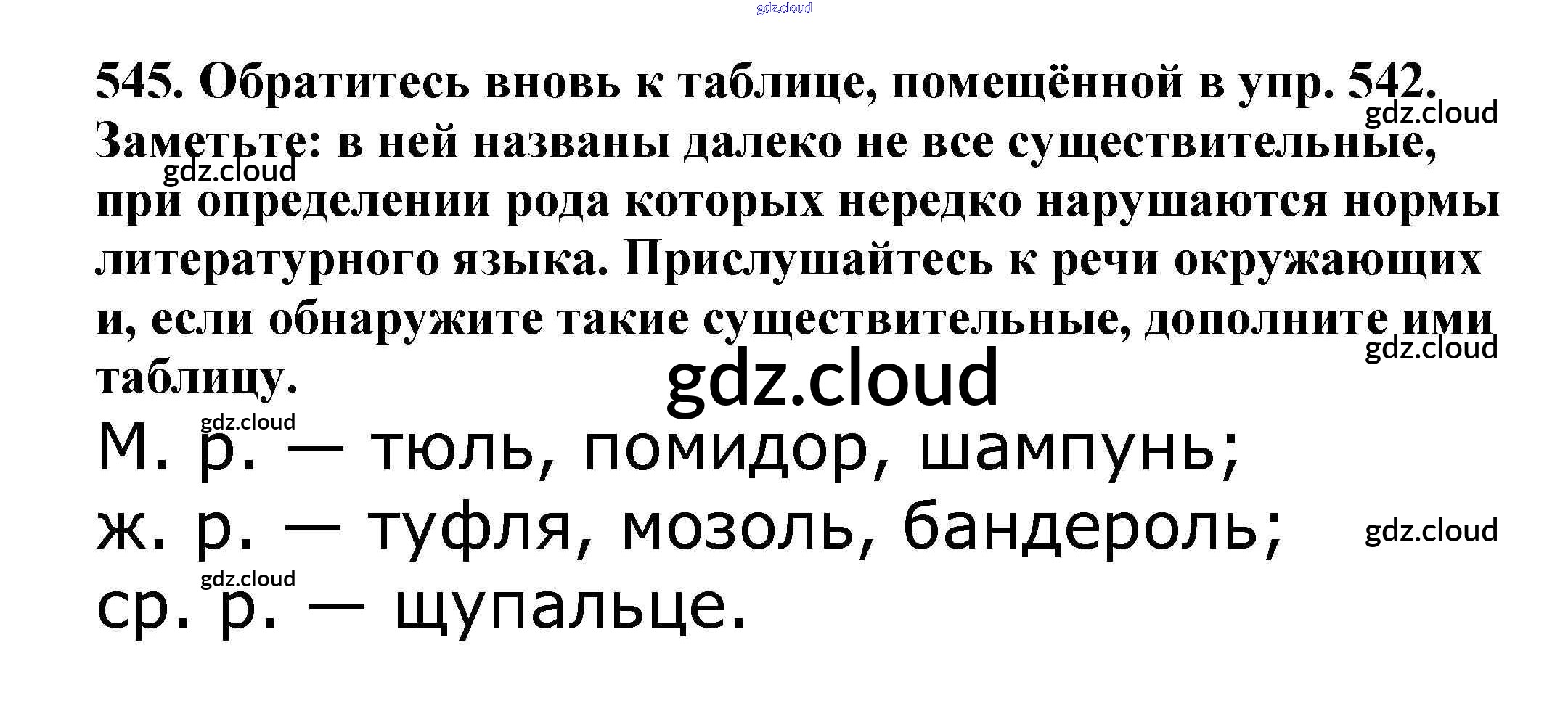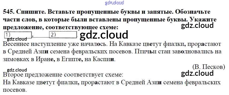 Ответ на задание 545 Учебник Русский язык за 5 (пятый) класс Баранов, Ладыженская, Тростенцова, Кулибаба, Григорян 2016, 2019 Часть 1, 2