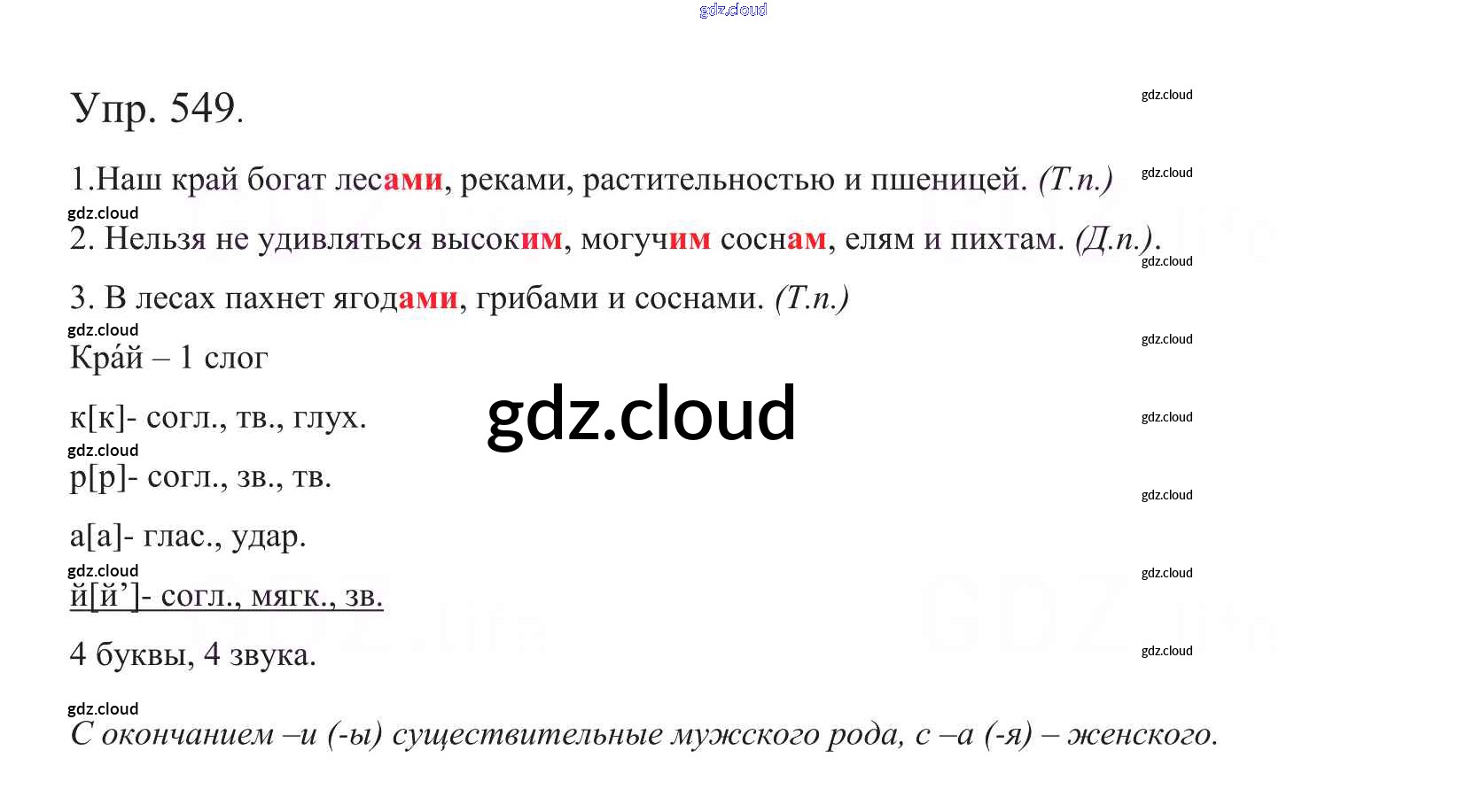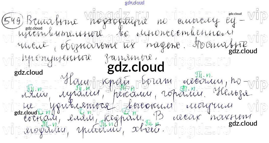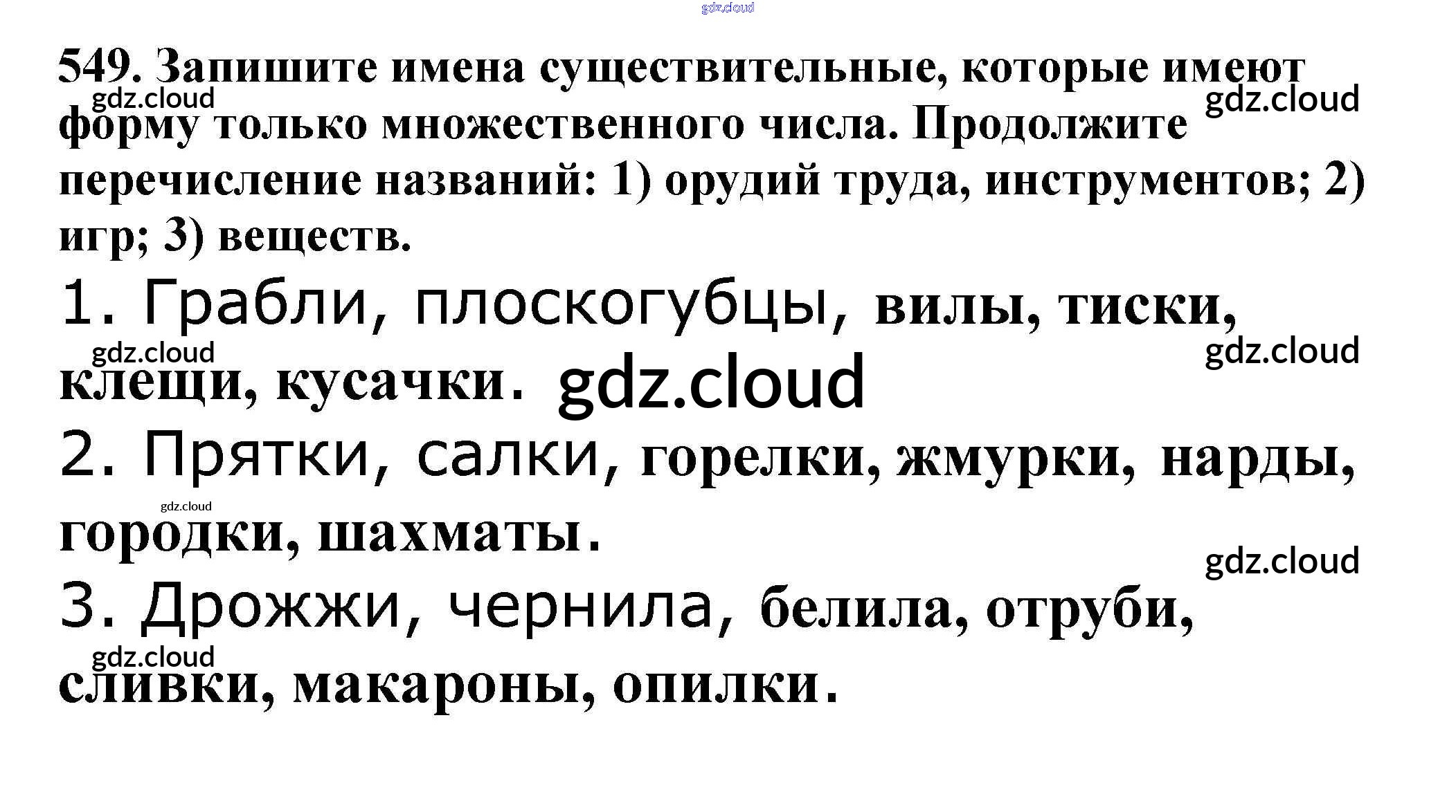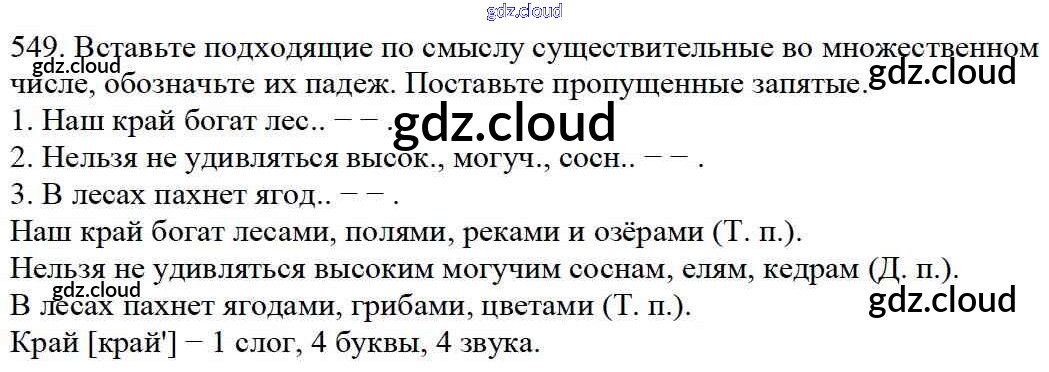 Ответ на задание 549 Учебник Русский язык за 5 (пятый) класс Баранов, Ладыженская, Тростенцова, Кулибаба, Григорян 2016, 2019 Часть 1, 2
