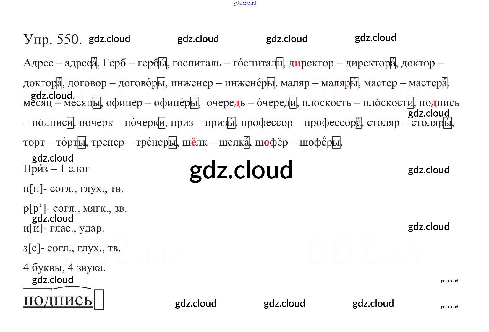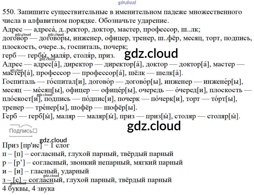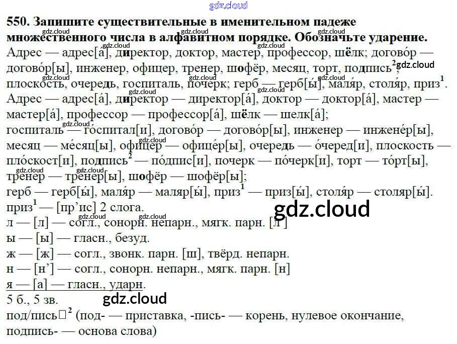 Ответ на задание 550 Учебник Русский язык за 5 (пятый) класс Баранов, Ладыженская, Тростенцова, Кулибаба, Григорян 2016, 2019 Часть 1, 2