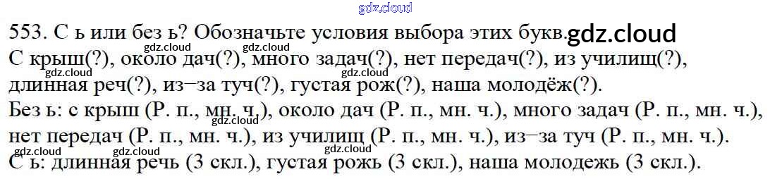 Ответ на задание 553 Учебник Русский язык за 5 (пятый) класс Баранов, Ладыженская, Тростенцова, Кулибаба, Григорян 2016, 2019 Часть 1, 2