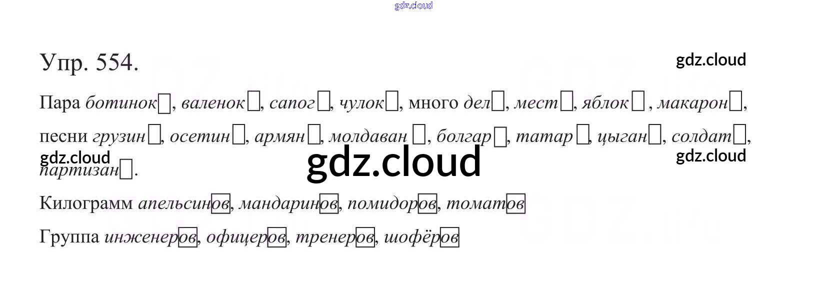 Ответ на задание 554 Учебник Русский язык за 5 (пятый) класс Баранов, Ладыженская, Тростенцова, Кулибаба, Григорян 2016, 2019 Часть 1, 2