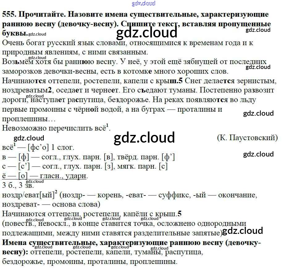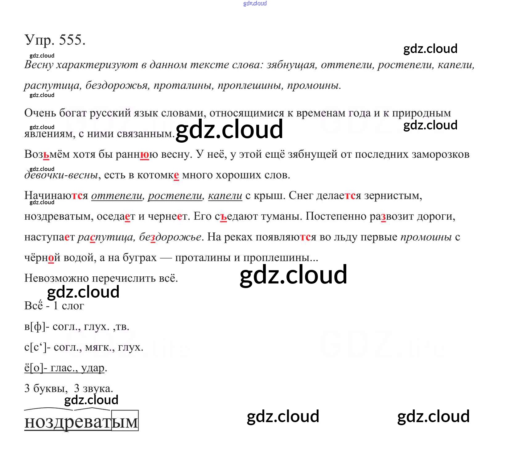 Ответ на задание 555 Учебник Русский язык за 5 (пятый) класс Баранов, Ладыженская, Тростенцова, Кулибаба, Григорян 2016, 2019 Часть 1, 2