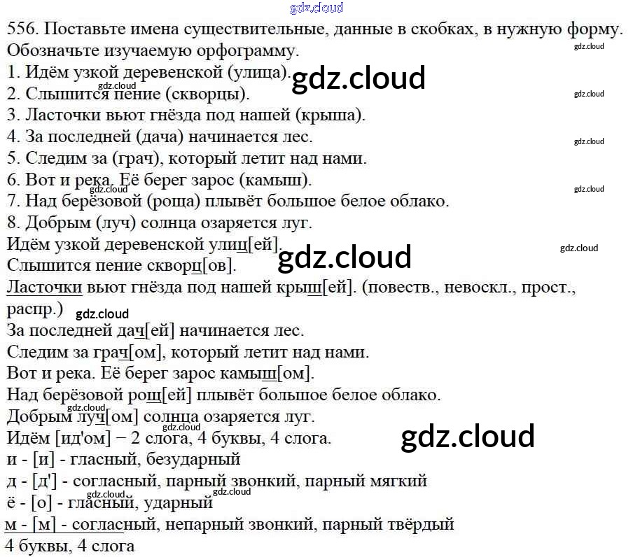 Ответ на задание 556 Учебник Русский язык за 5 (пятый) класс Баранов, Ладыженская, Тростенцова, Кулибаба, Григорян 2016, 2019 Часть 1, 2